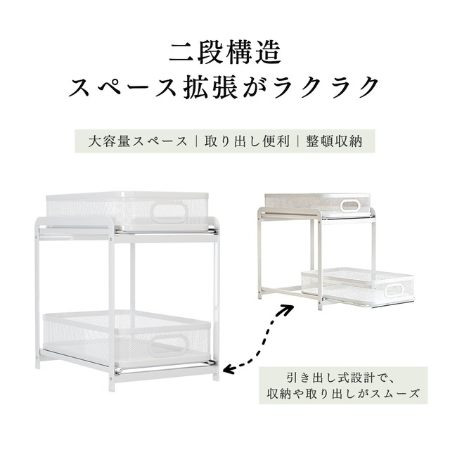 J-359 .キッチン引き出し式ラック キャビネット内二段ラック 調味料ラック シンク下収納 スーパーディープ対応