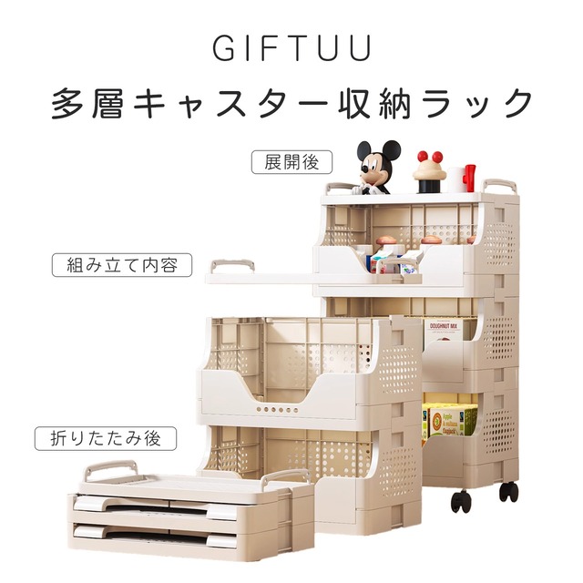 J-338 .折りたたみ式 フロアラック - ベランダ移動可能 収納カート