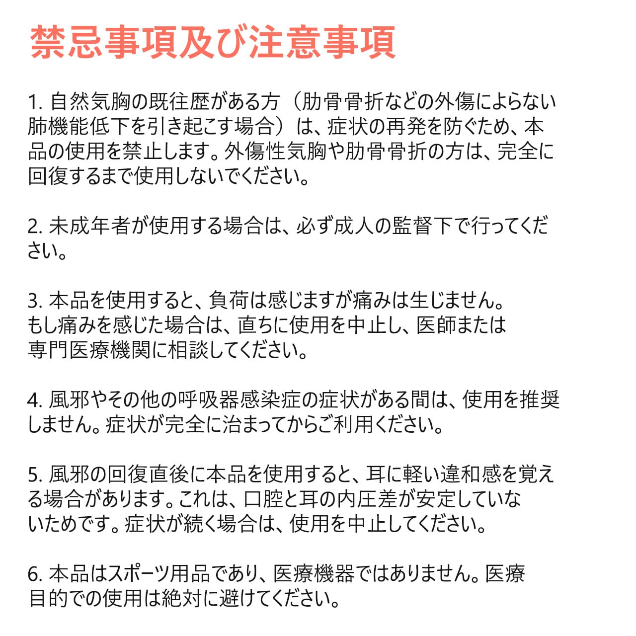禁忌:気胸の既往/肋骨骨折の回復期は使用不可