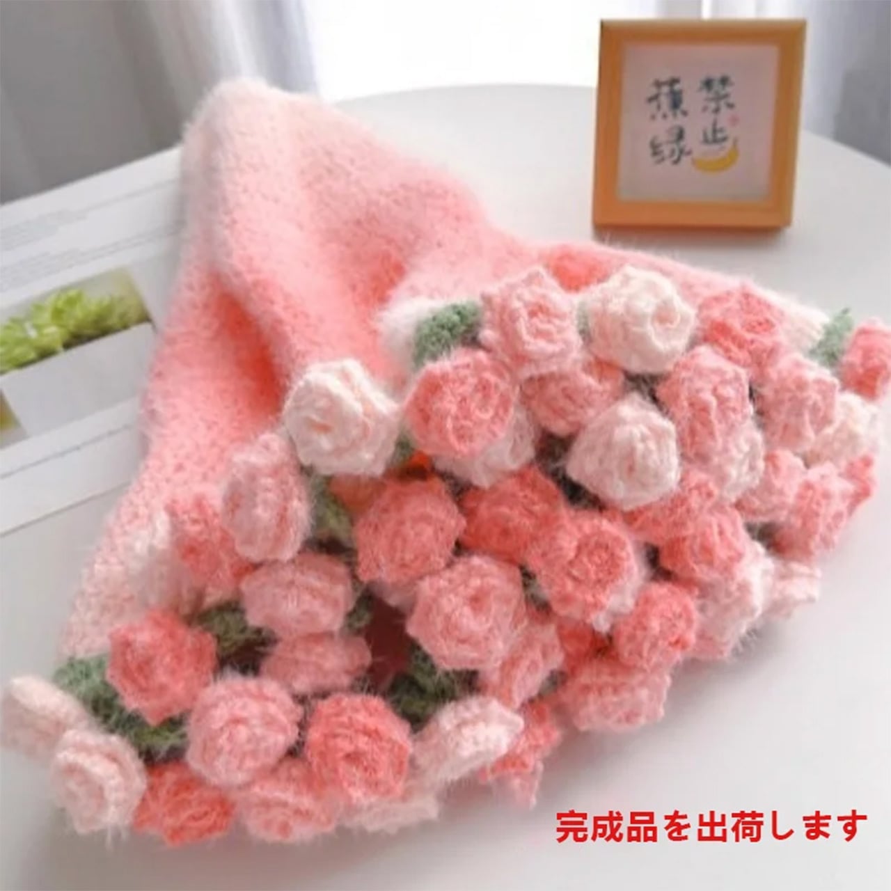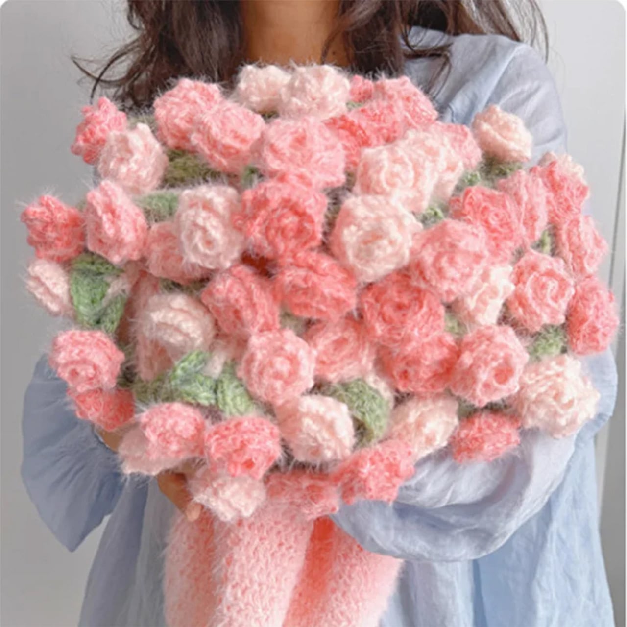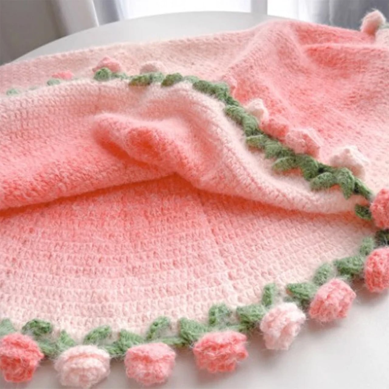 B197 .ニューモデル ドリーミーグラデーションバラ模様ブランケット 手作り DIY 編み毛糸フラワーブーケ風敷物 完成品 彼女へのプレゼント クリスマス / 記念日ギフト