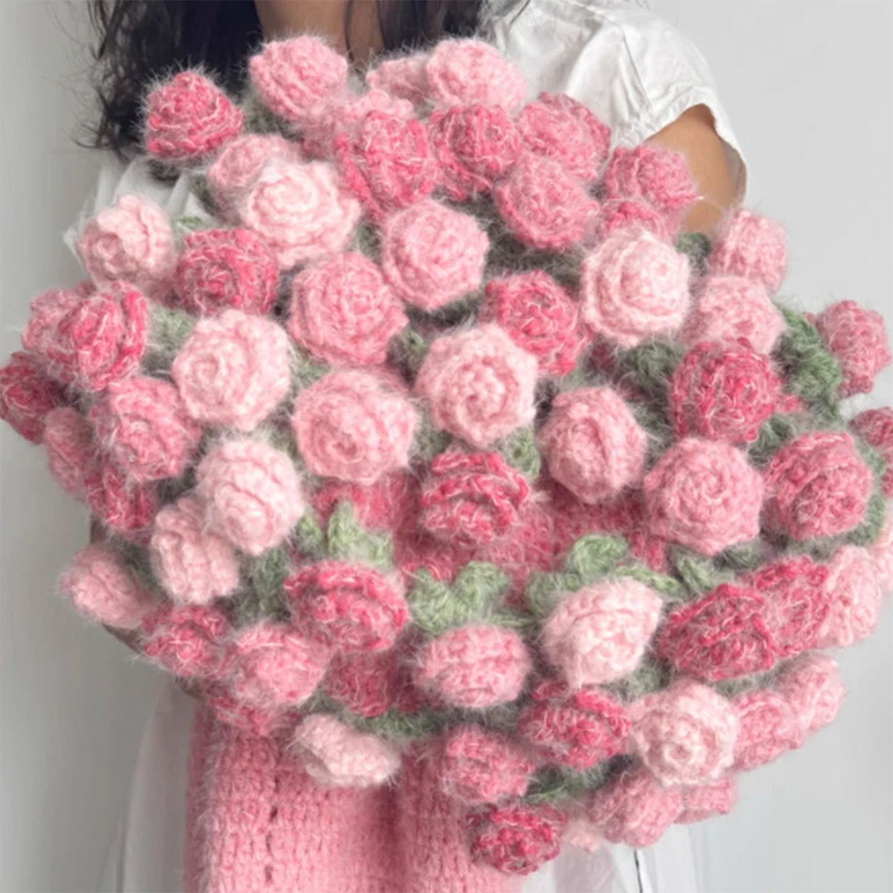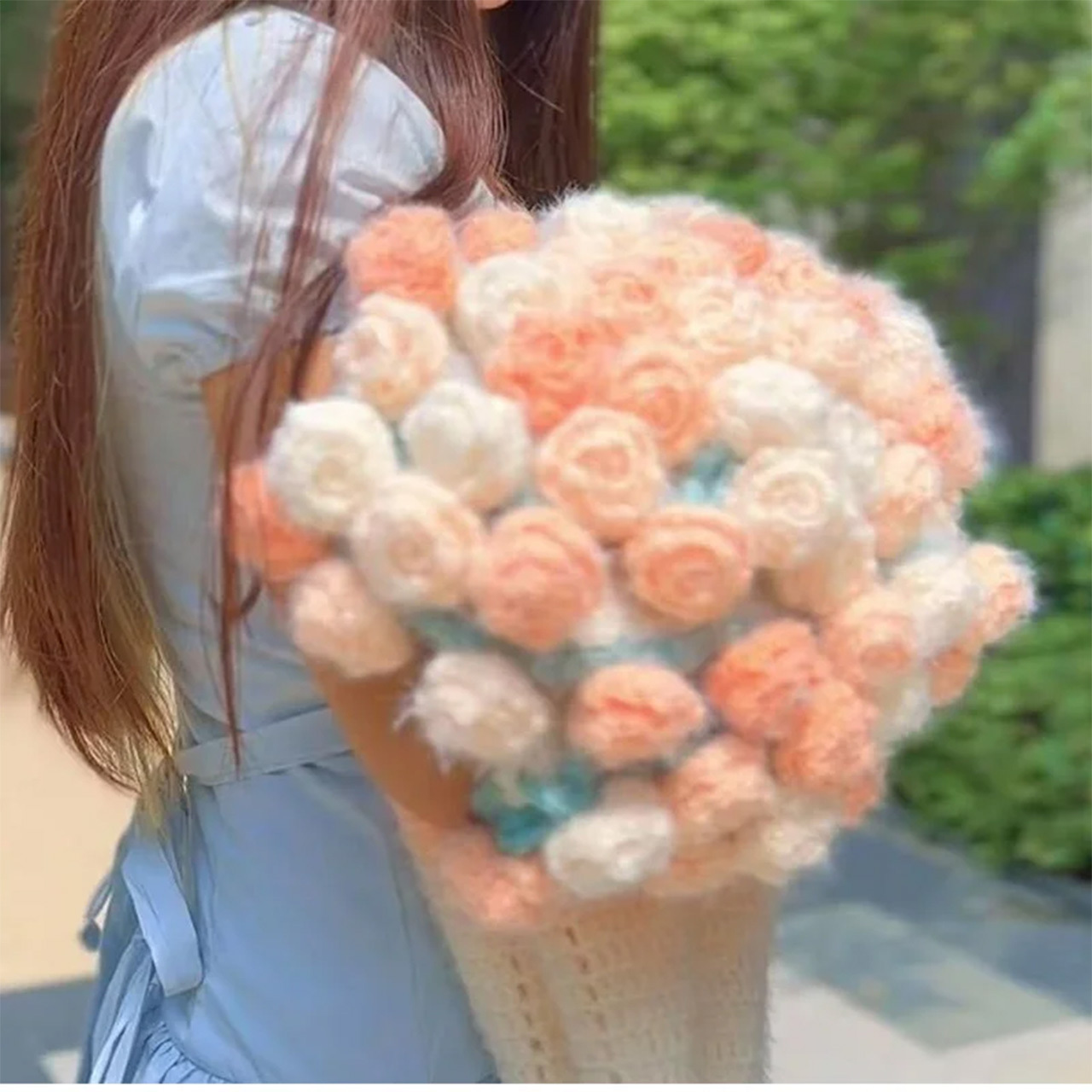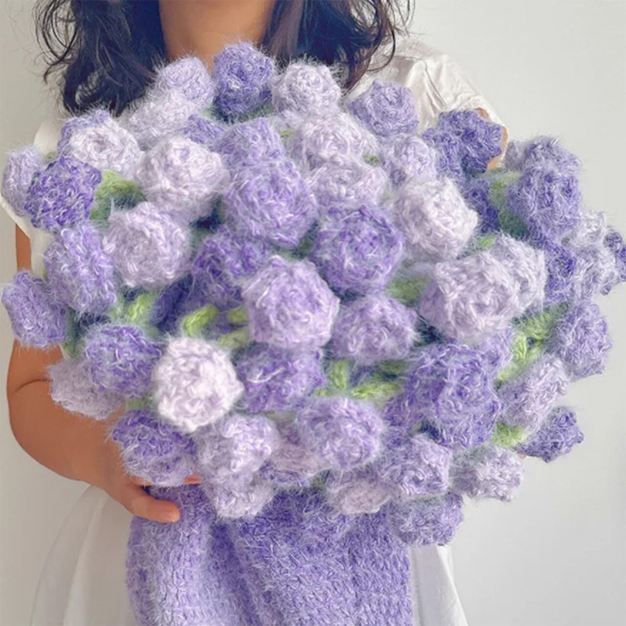 B197 .ニューモデル ドリーミーグラデーションバラ模様ブランケット 手作り DIY 編み毛糸フラワーブーケ風敷物 完成品 彼女へのプレゼント クリスマス / 記念日ギフト