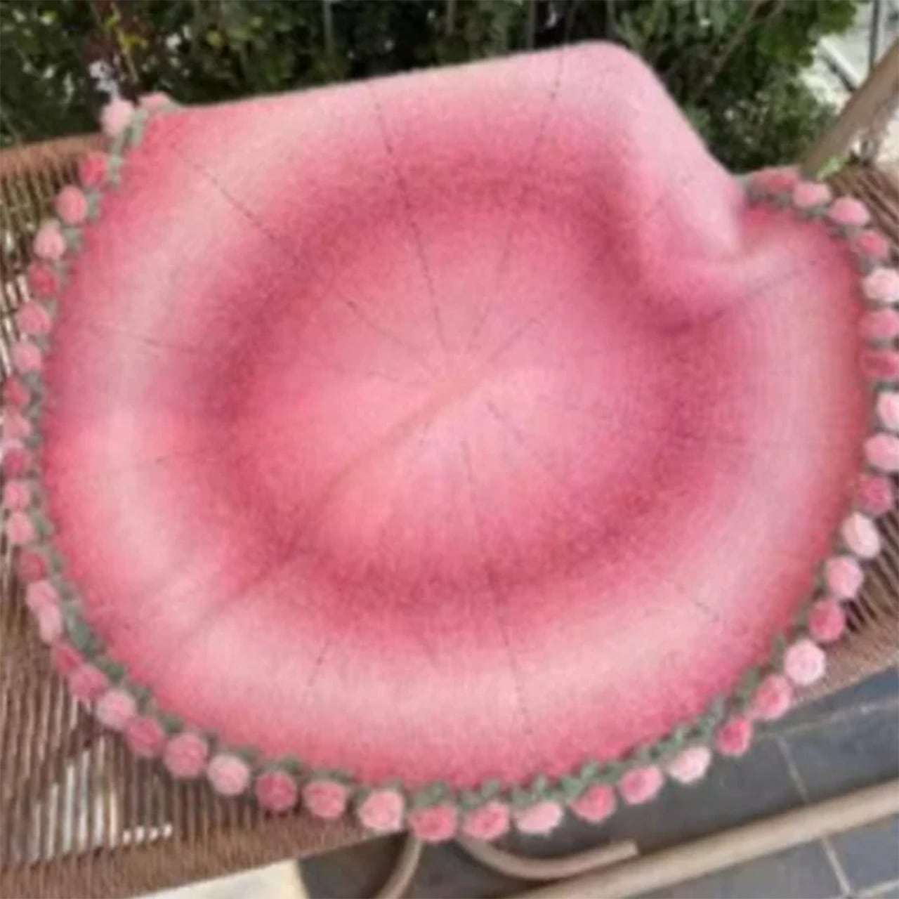 → 職人が心を込めて編み上げた、バラの花がモチーフのふんわりグラデーションラグです。