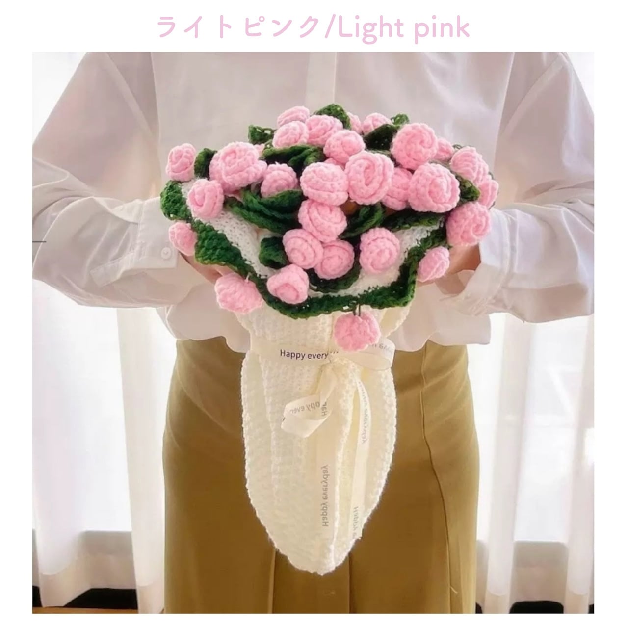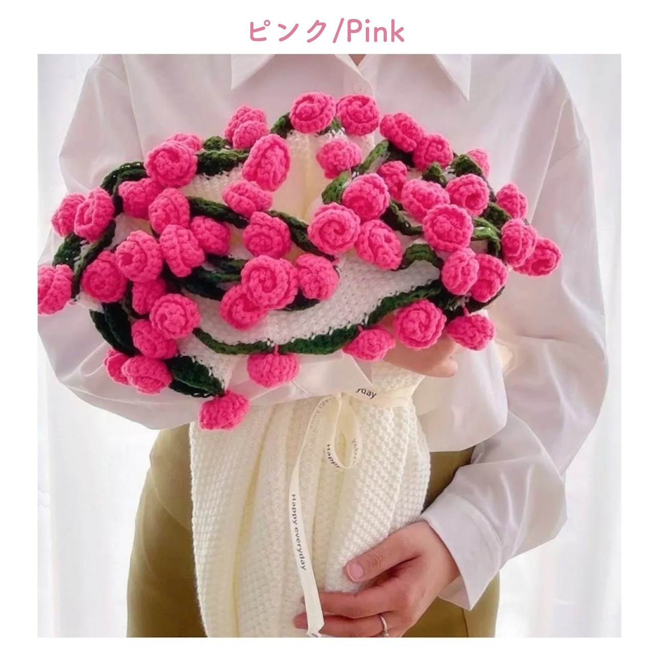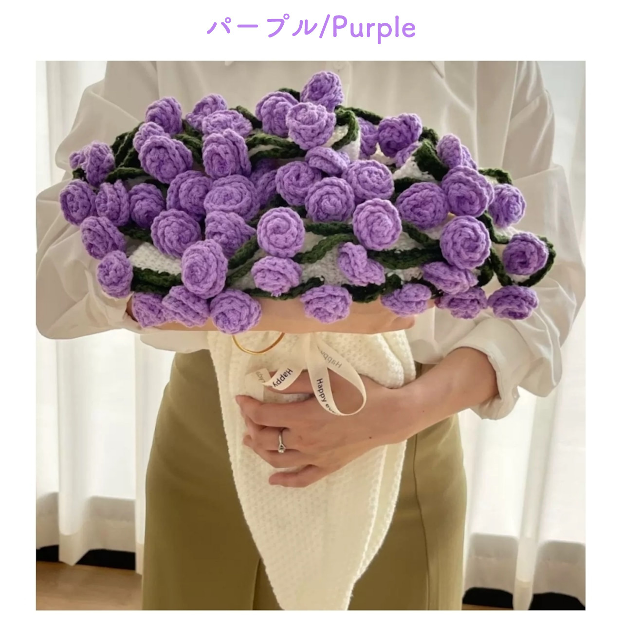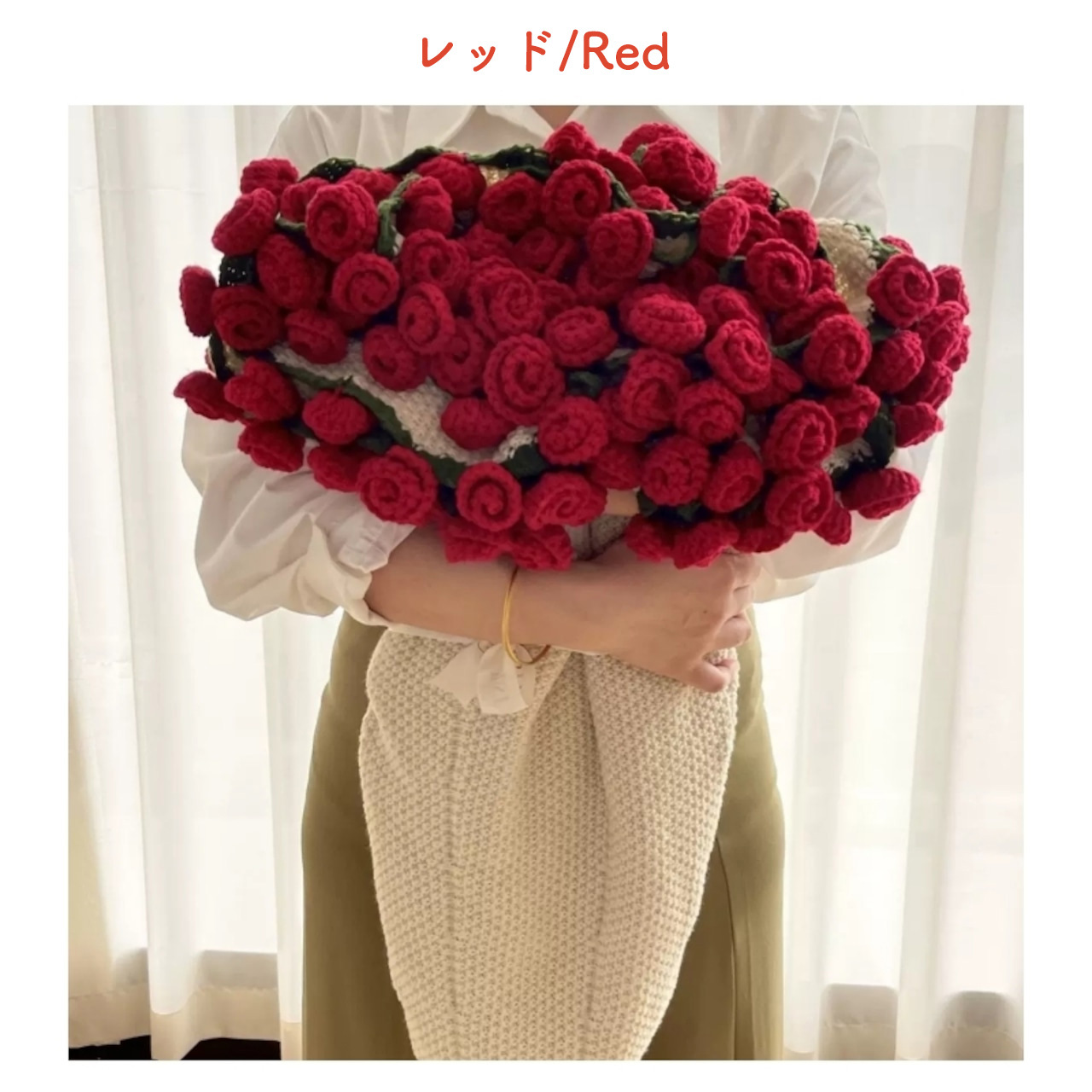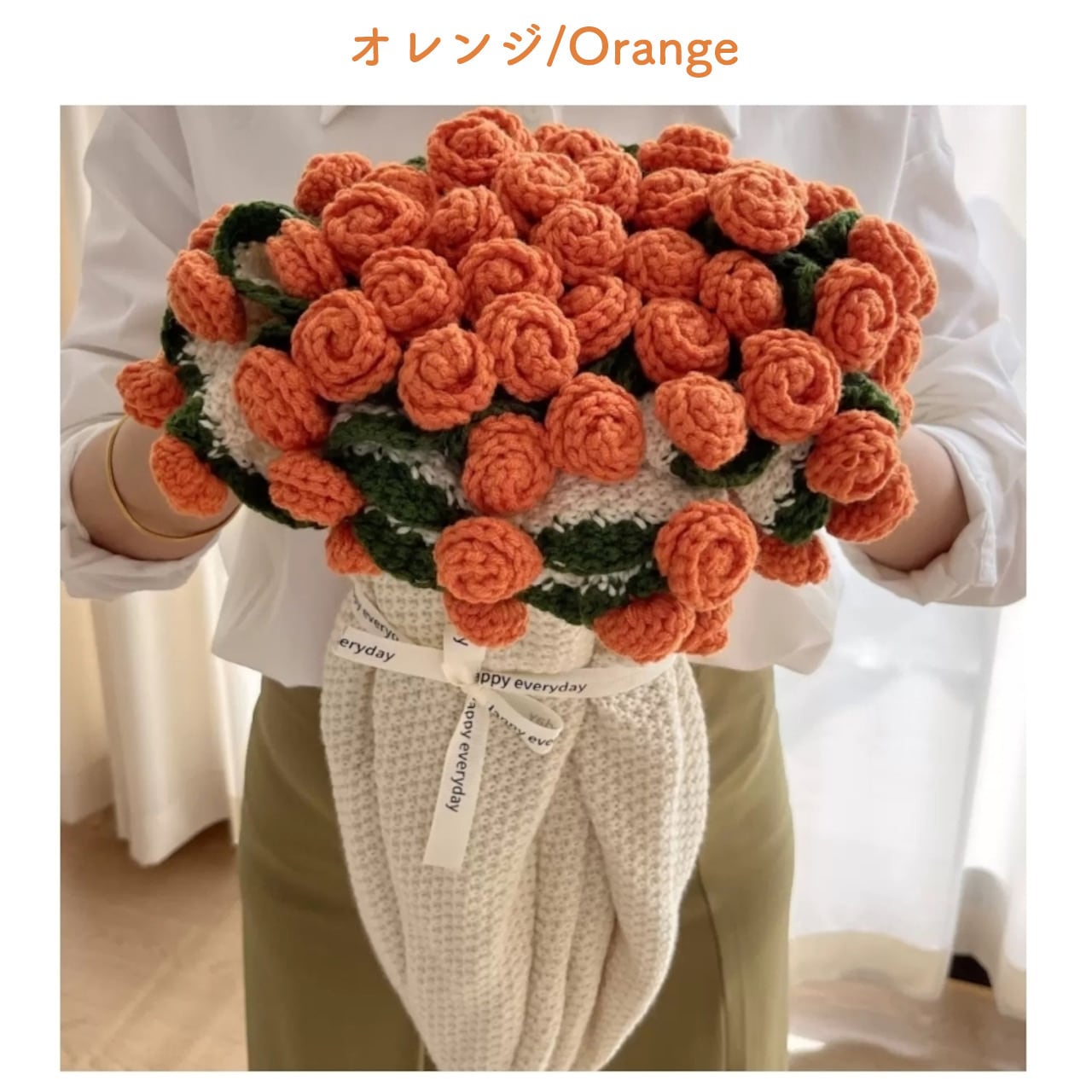 かぎ針編みの技法で花びらの重なりやツヤ感を精巧に表現。