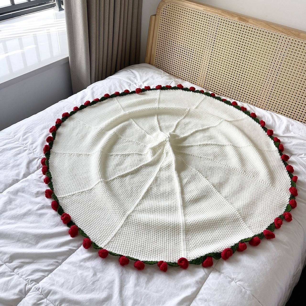 本製品は、愛情の象徴であるバラをモチーフに、職人が一本一本心を込めて編み上げたハンドメイドブランケットです。機械生産では出せない立体感と優雅な曲線で、バラの豊かな表情を再現。お部屋に永続的な華やぎとロマンティックな雰囲気を添えます。