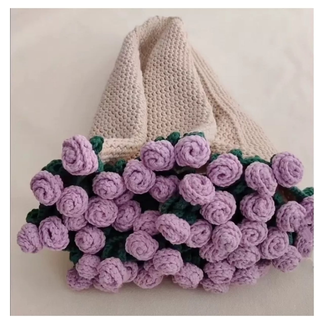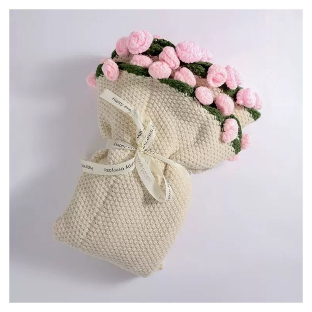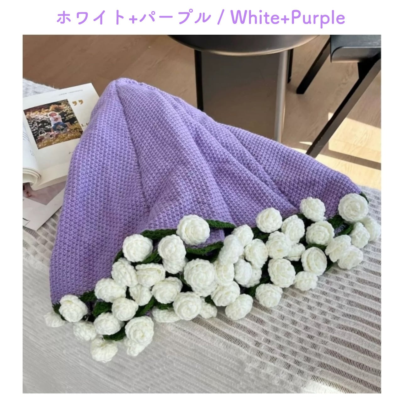 B187 .【職人手作り】バラのロマンティックブランケット かぎ針編み ブーケブランケット 完成品