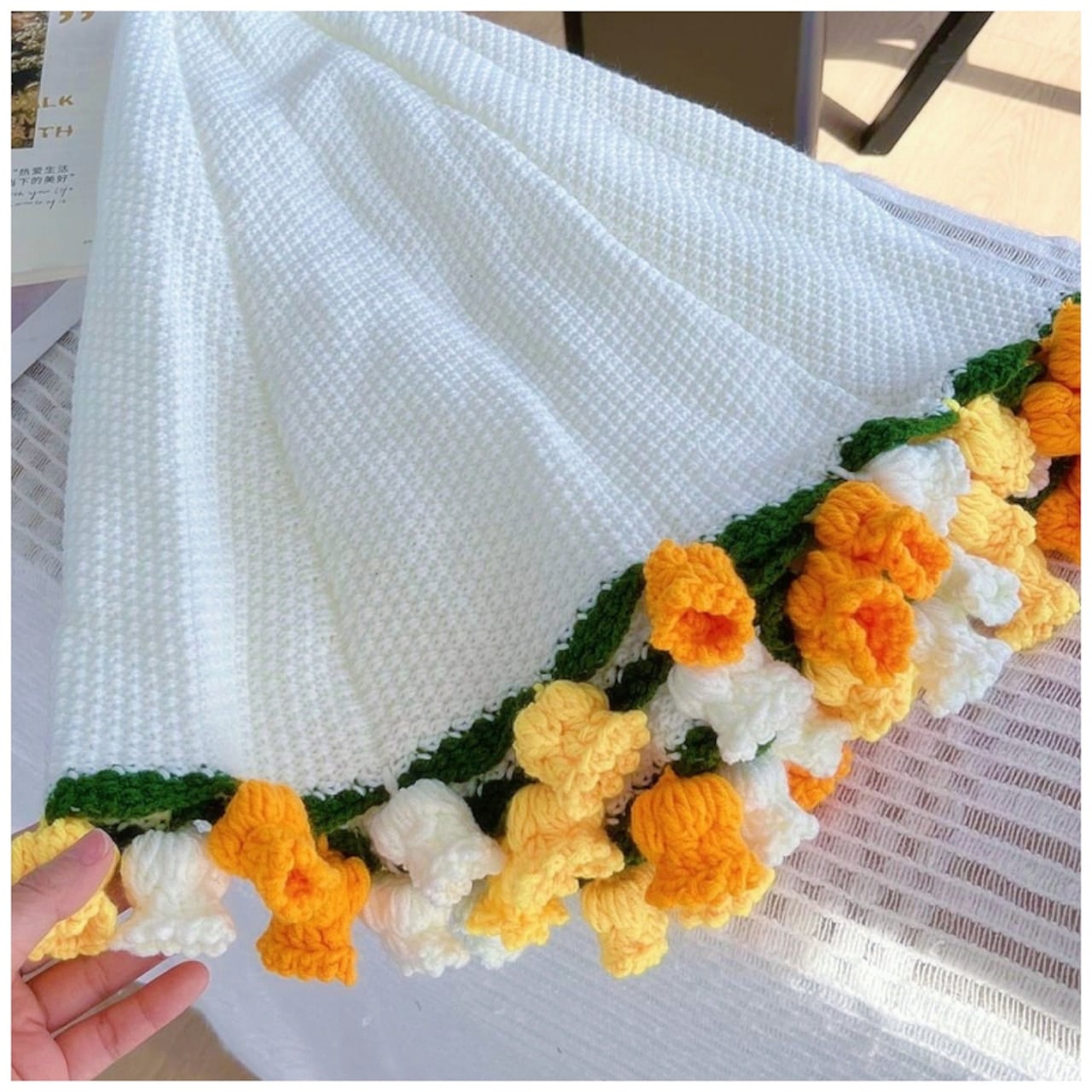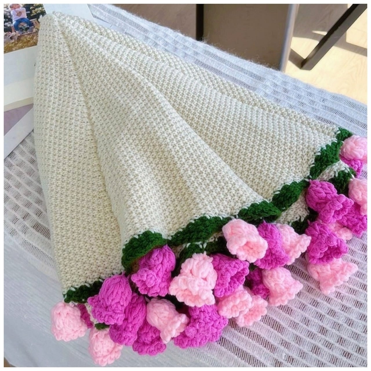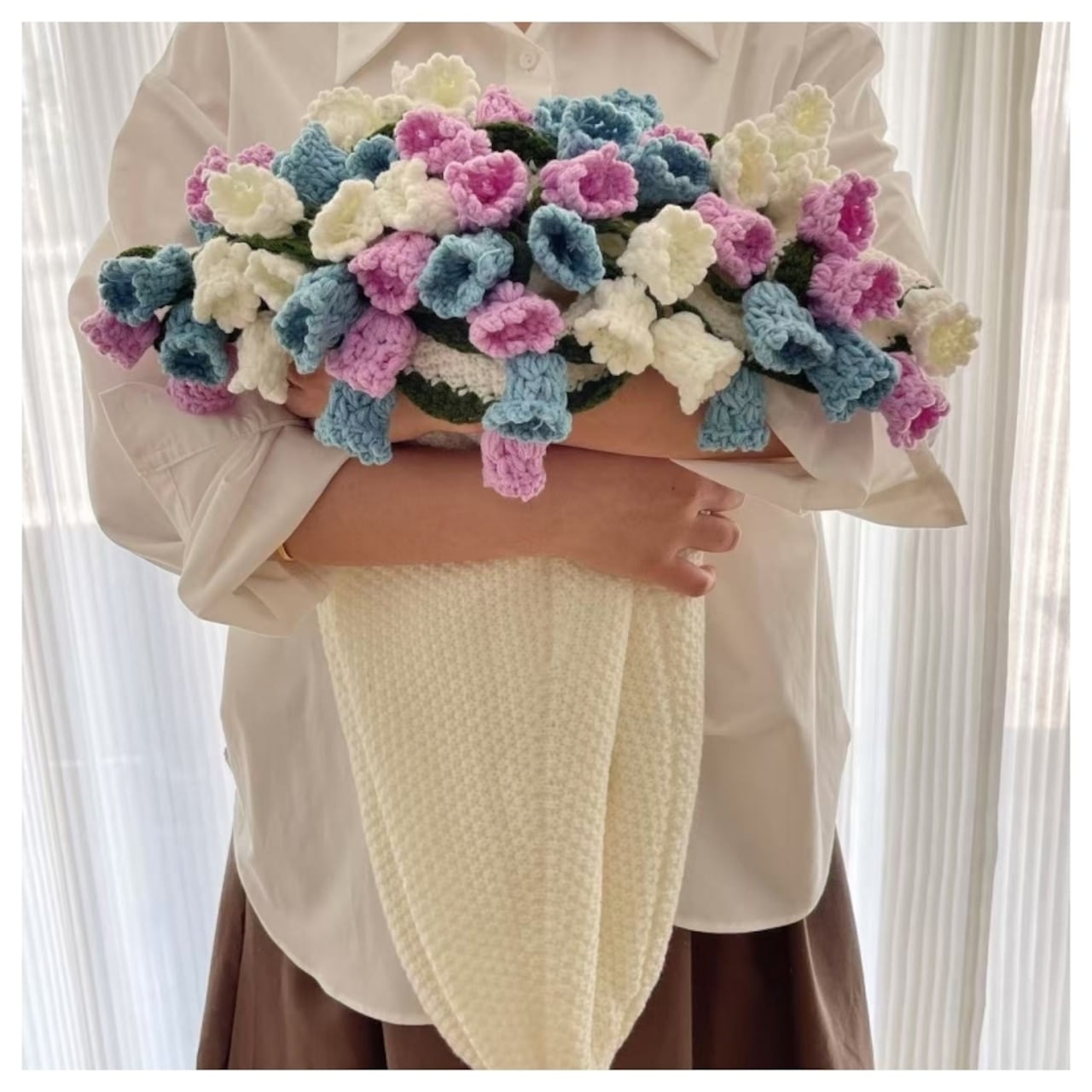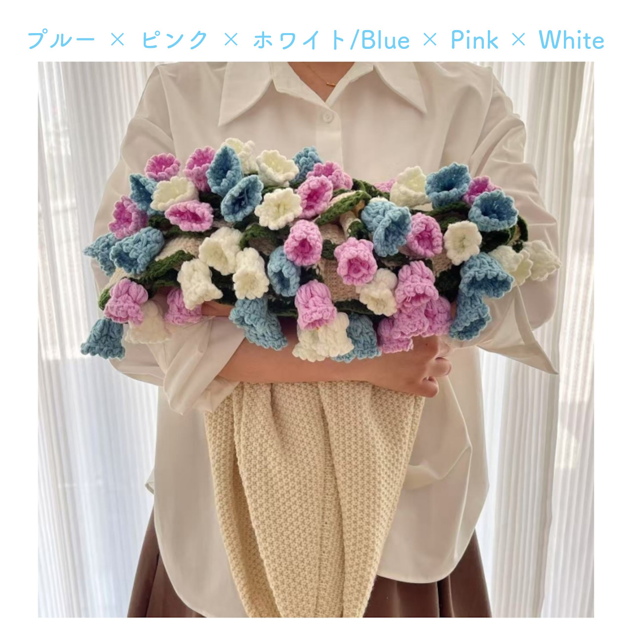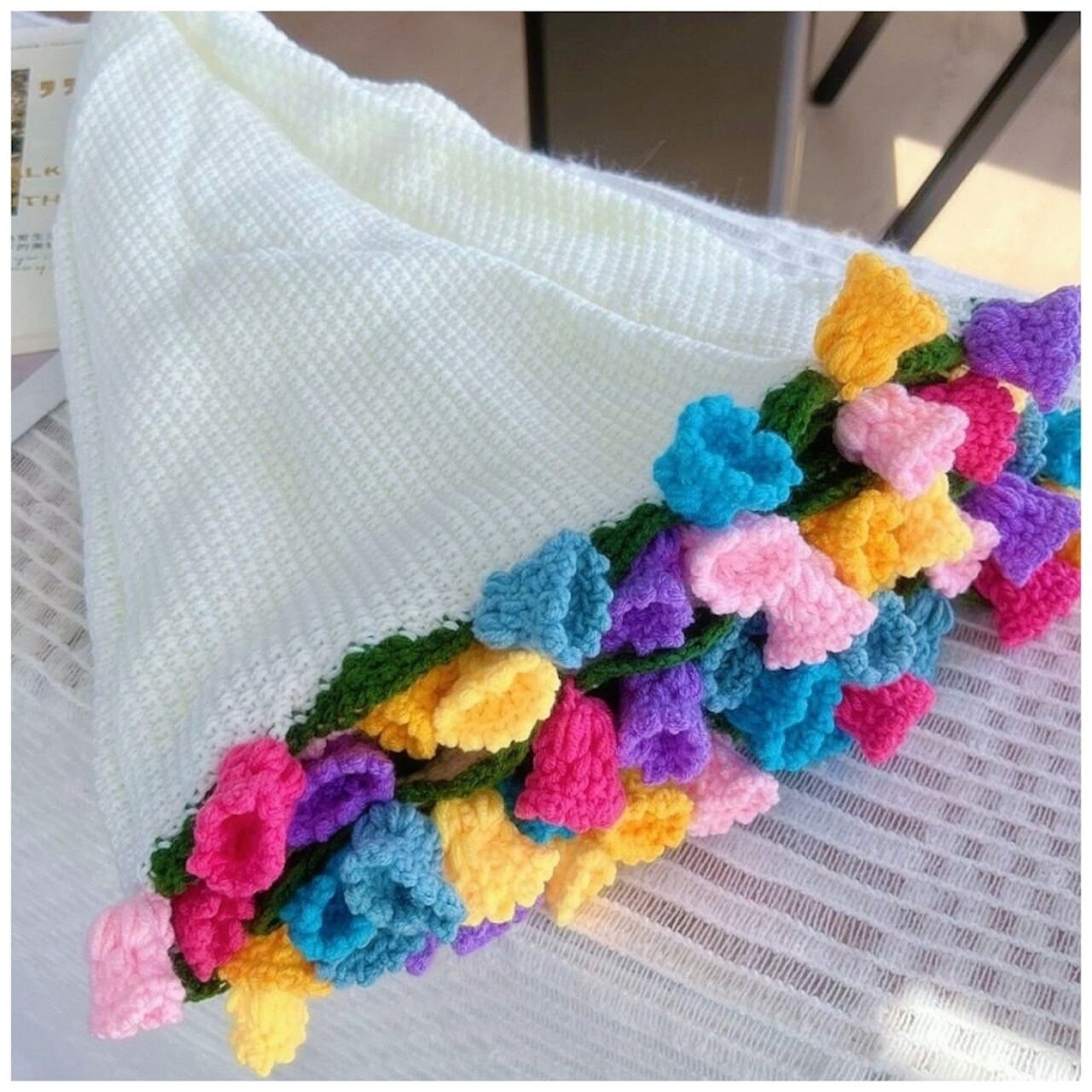【職人手作り】枯れない鈴蘭の絨毯 かぎ針編み 鈴蘭ブランケット ブーケブランケット 完成品