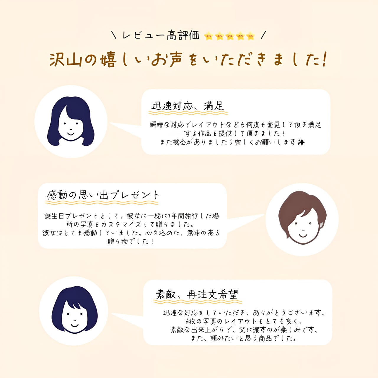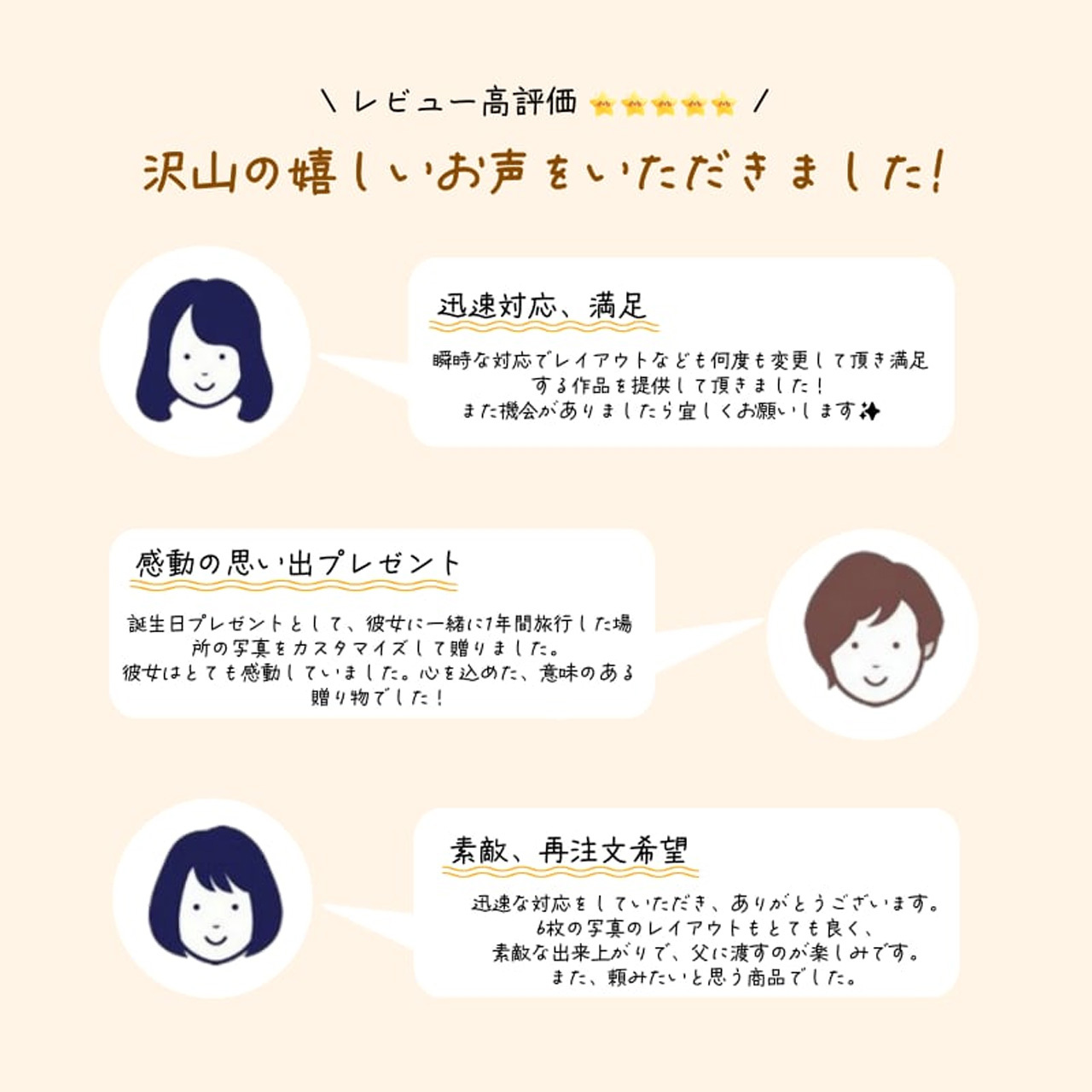 ご購入後、印刷したい写真とご注文番号をお送りいただければ、写真をもとにレイアウトを作成いたします。