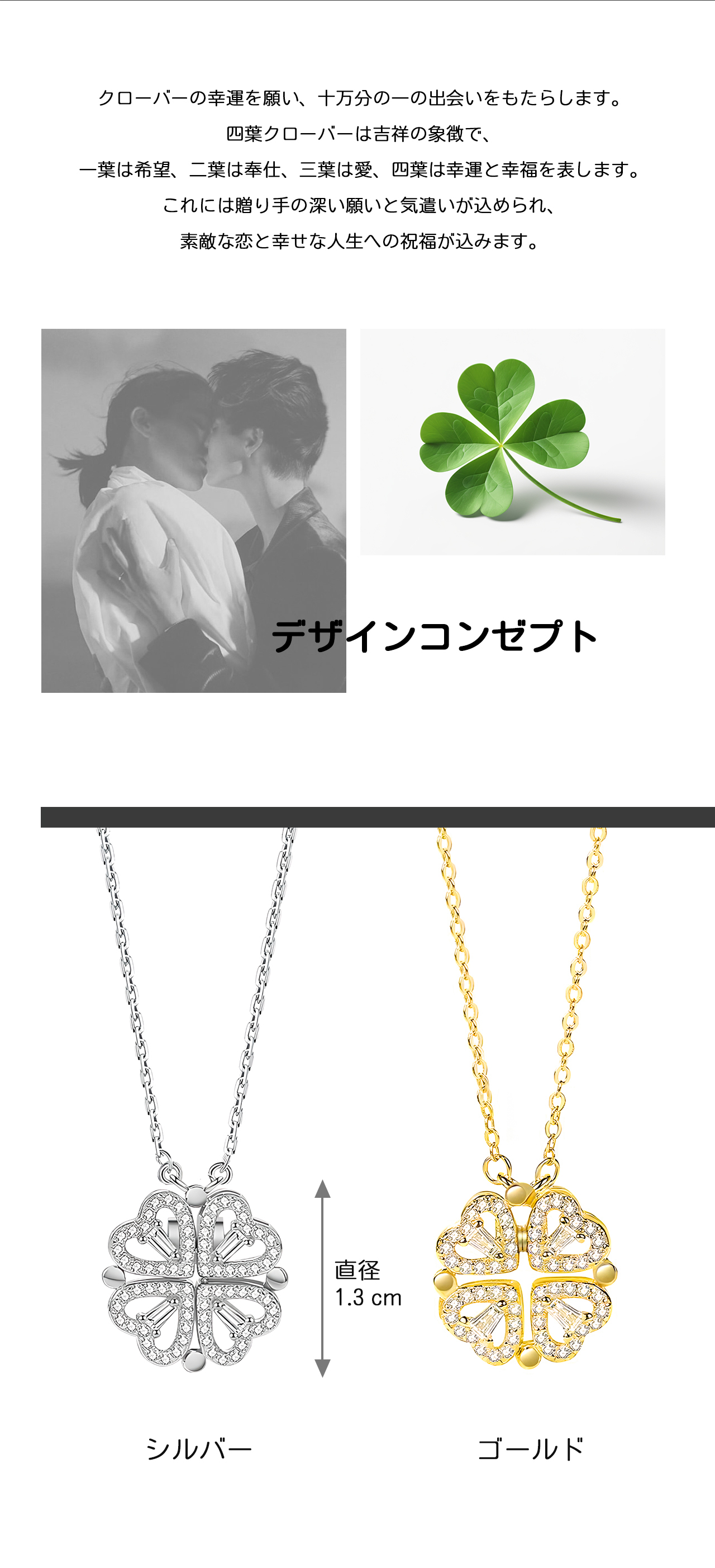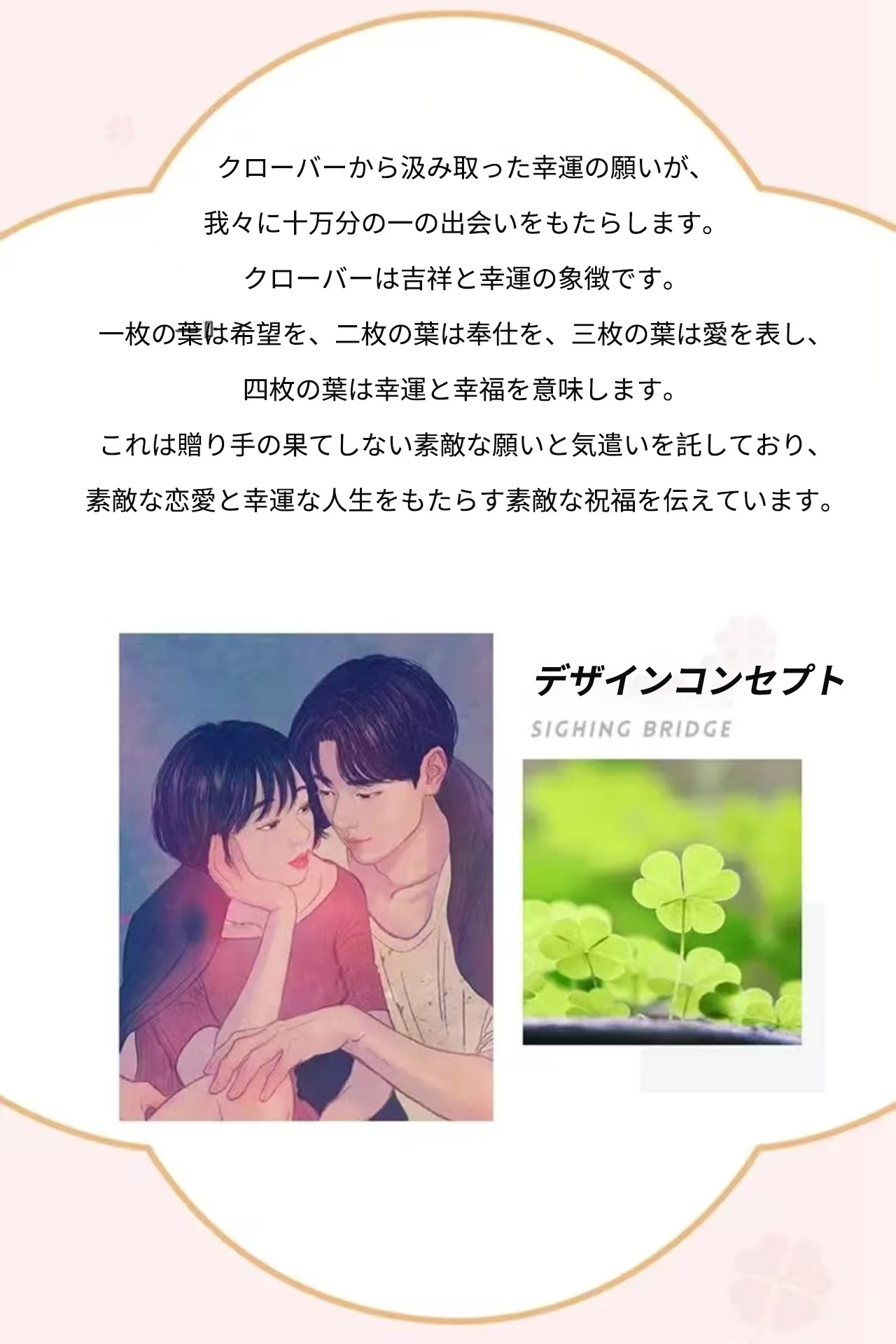 → 「希望・努力・愛・幸運」を象徴する四葉の意味が込められ、贈り物に最適。