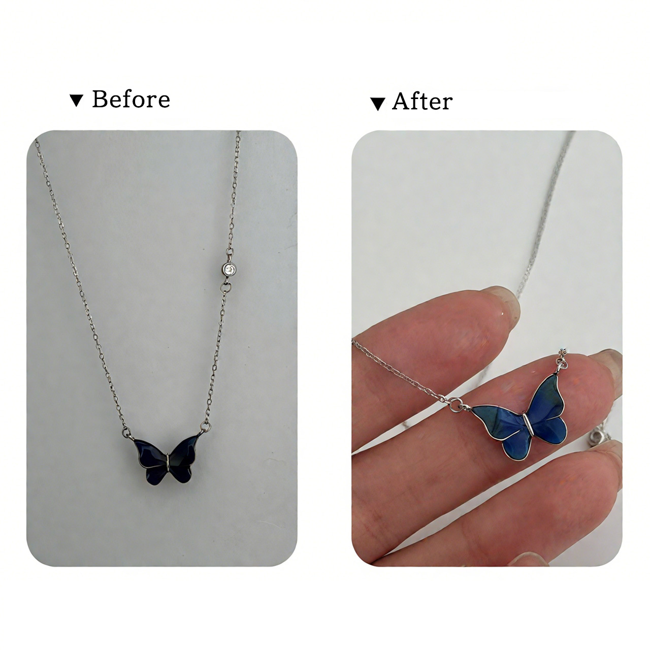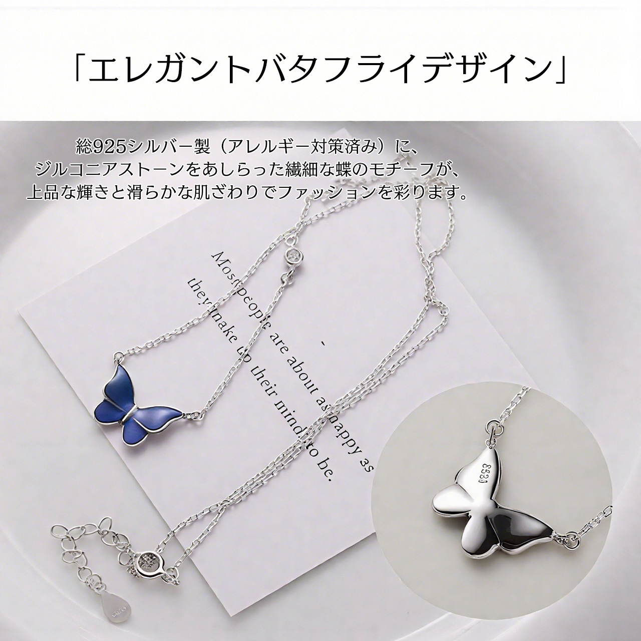 B173 .体温で色が変わる魔法の蝶 バタフライネックレス