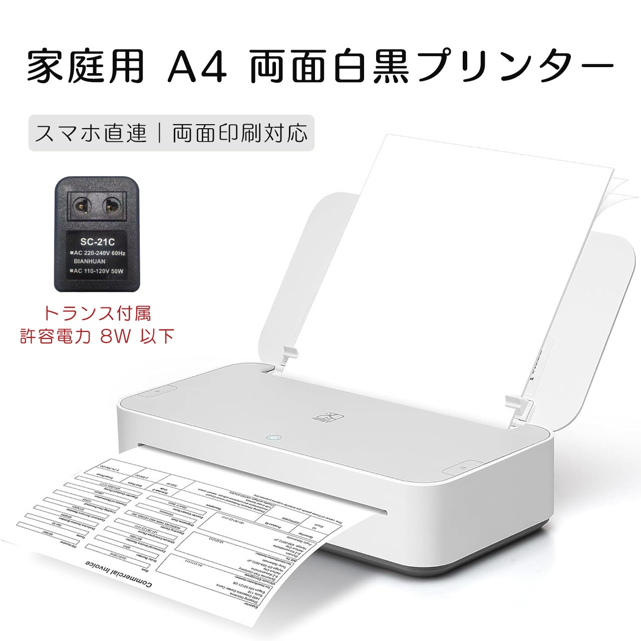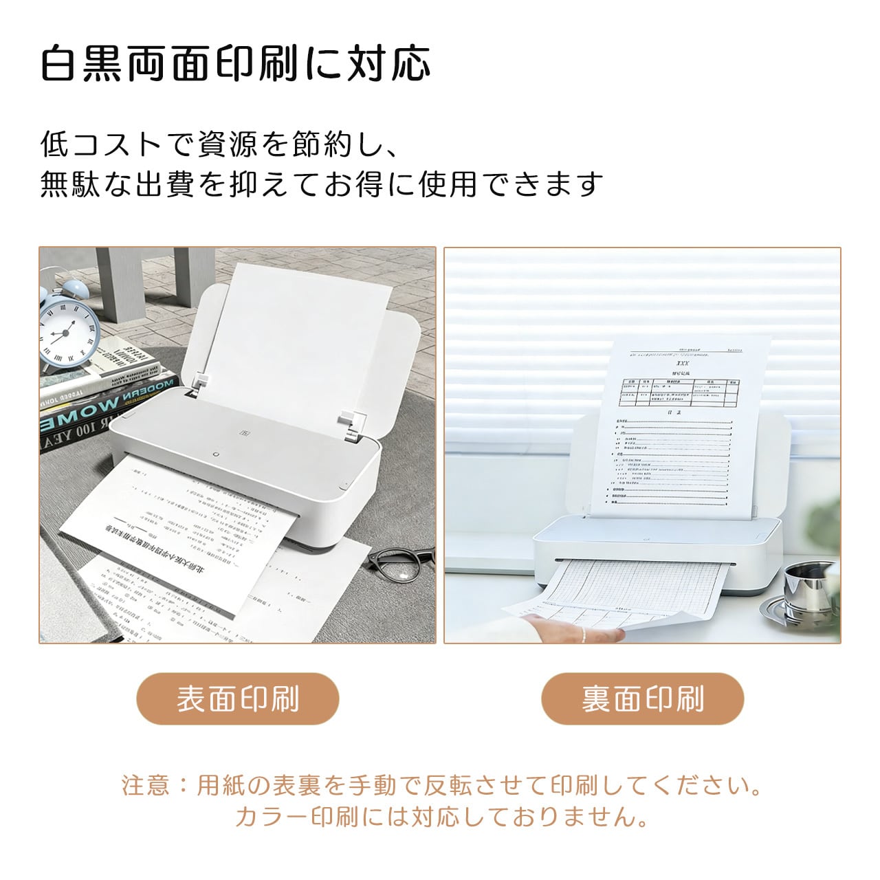 これは家庭用の小型A4プリンターです、本体のサイズは295.5*147*69mmです。純白の本体は高級感があり、小型で場所を取らず、どんなシーンにも適しており、収納もやすいです。