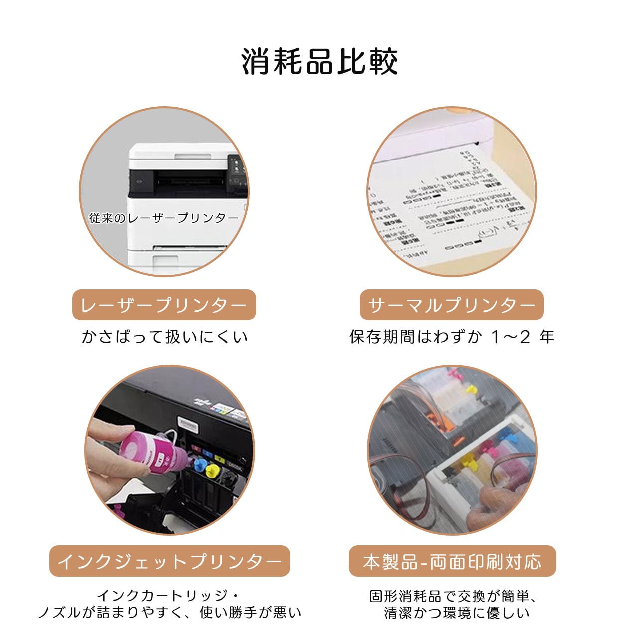 熱転写技術を採用したこのプリンターは、インクが不要で、目詰まりもなく、インクリボンの交換だけで済み、解像度は最大300DPIで、鮮明でスムーズな印刷ができます。