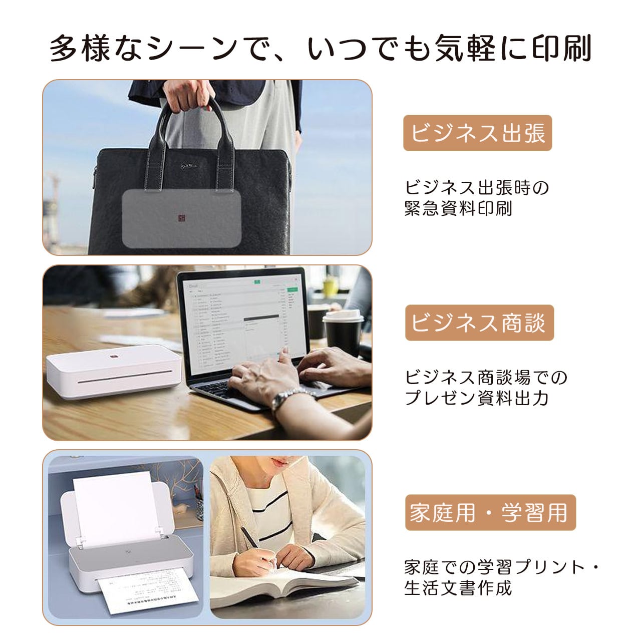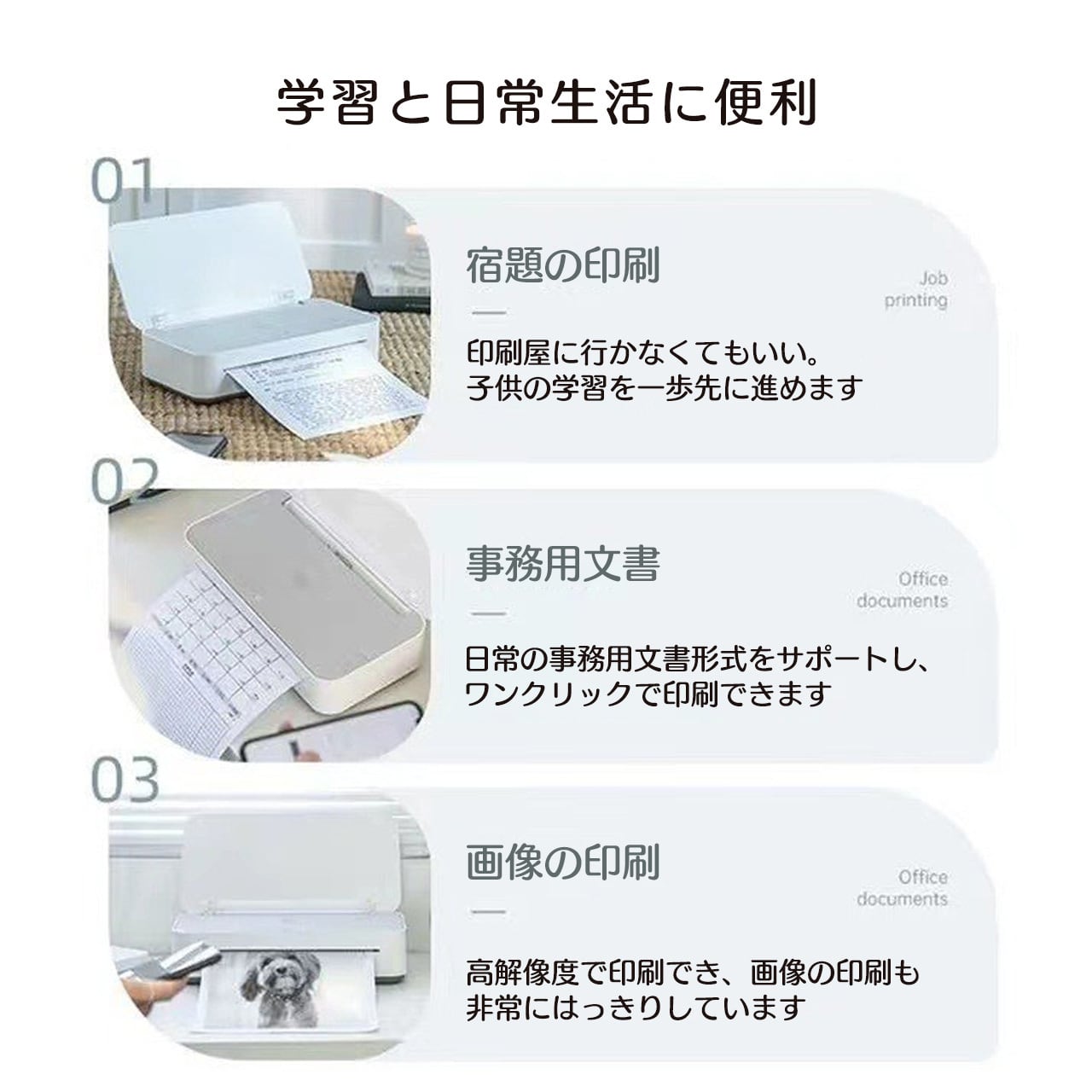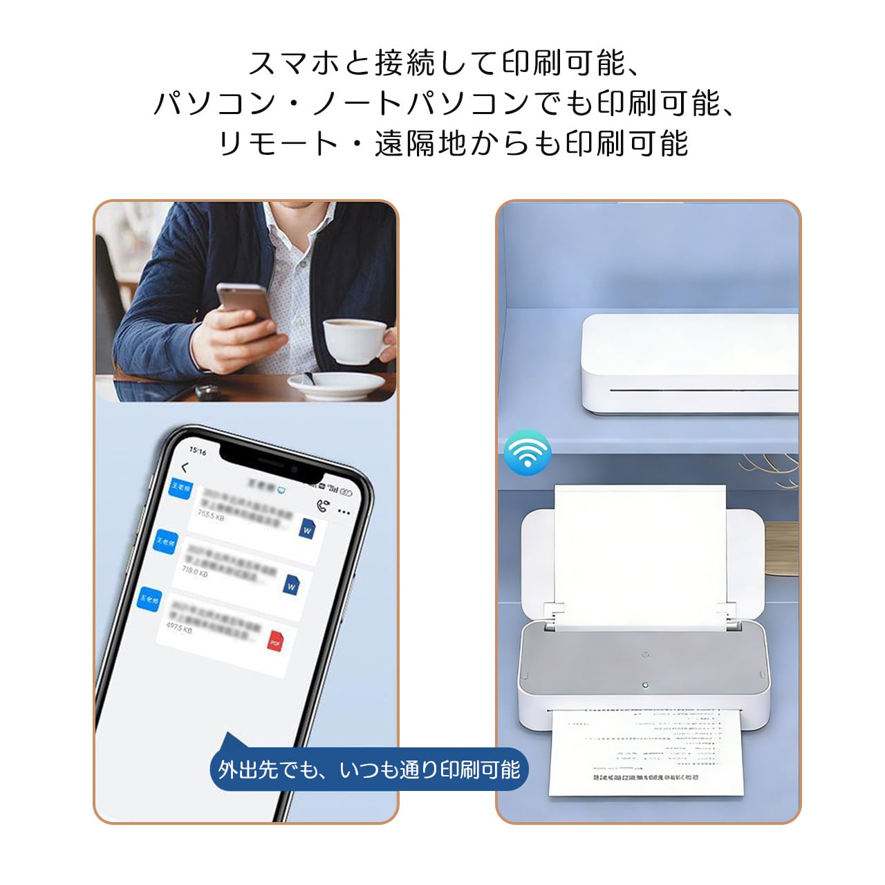 クラウド印刷に対応しており、手元になくても、どんなに遠くても、プリンタはwifiに接続されていれば、APPを通じて印刷データを送信して遠隔印刷することができ、効率的で便利です。