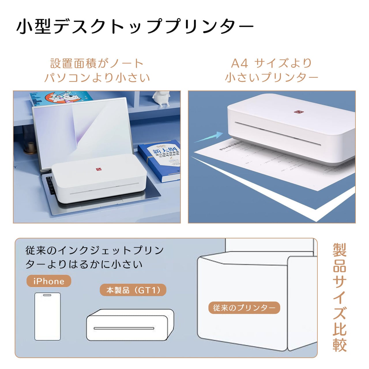 B114 .GT1リンター 小型 A4 プリンター ミニ コンパクト Wi-Fi リモート印刷可能 家庭用 ビジネス