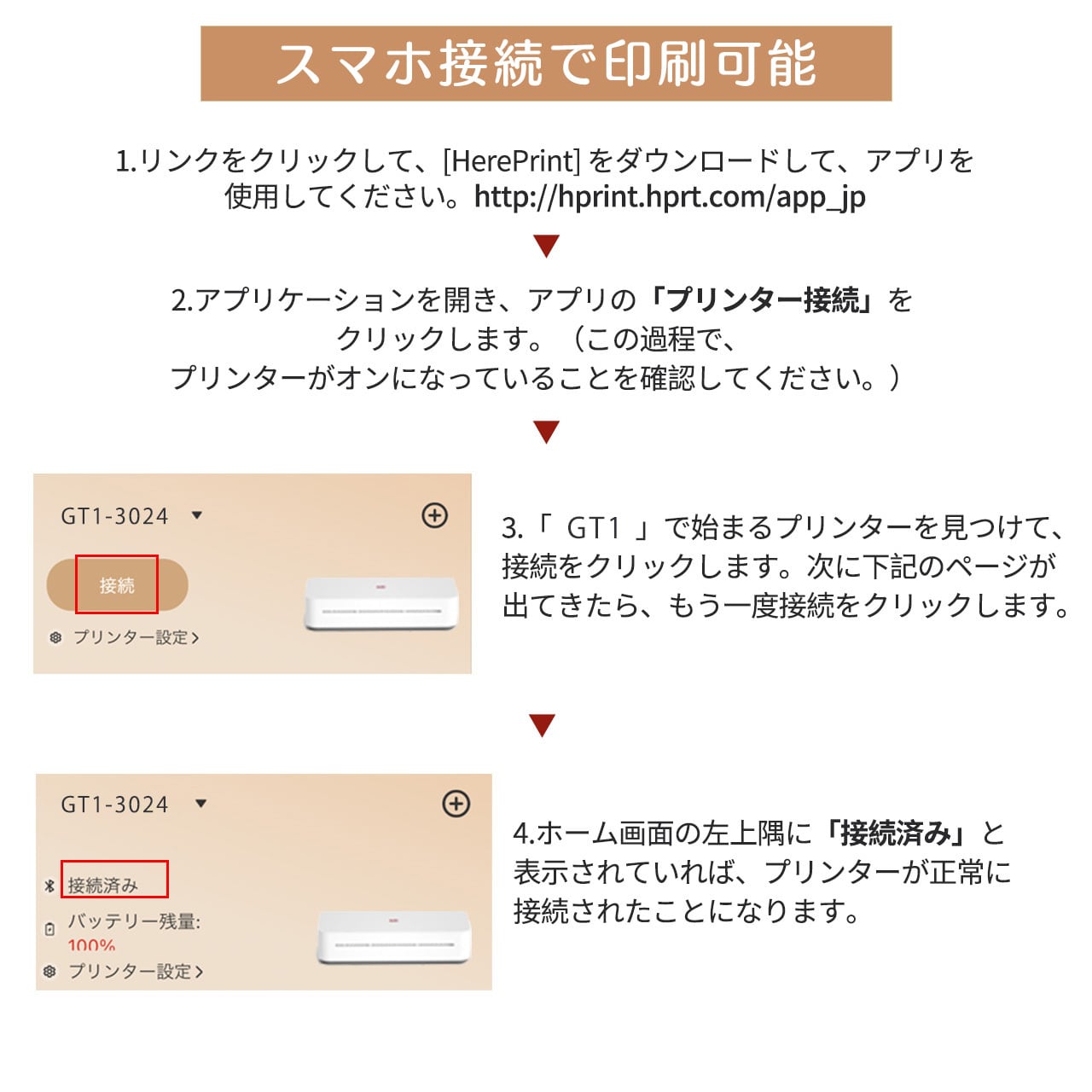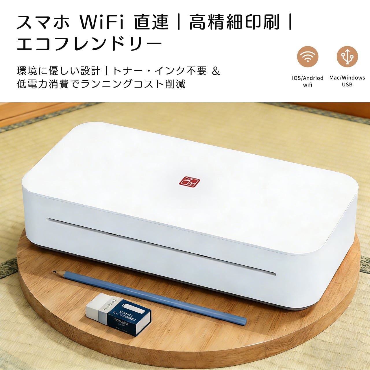 携帯電話はHerePrintというAPPを通じて、無線LAN(2.4 GHzでなければならない)に接続し、印刷できます。USB経由でパソコンにドライバーをインストールして印刷できます。 (使用時に電気を必要とします。説明書に記載されているQRコードとウェブサイトからAPPとドライバーを正しくダウンロードください。)