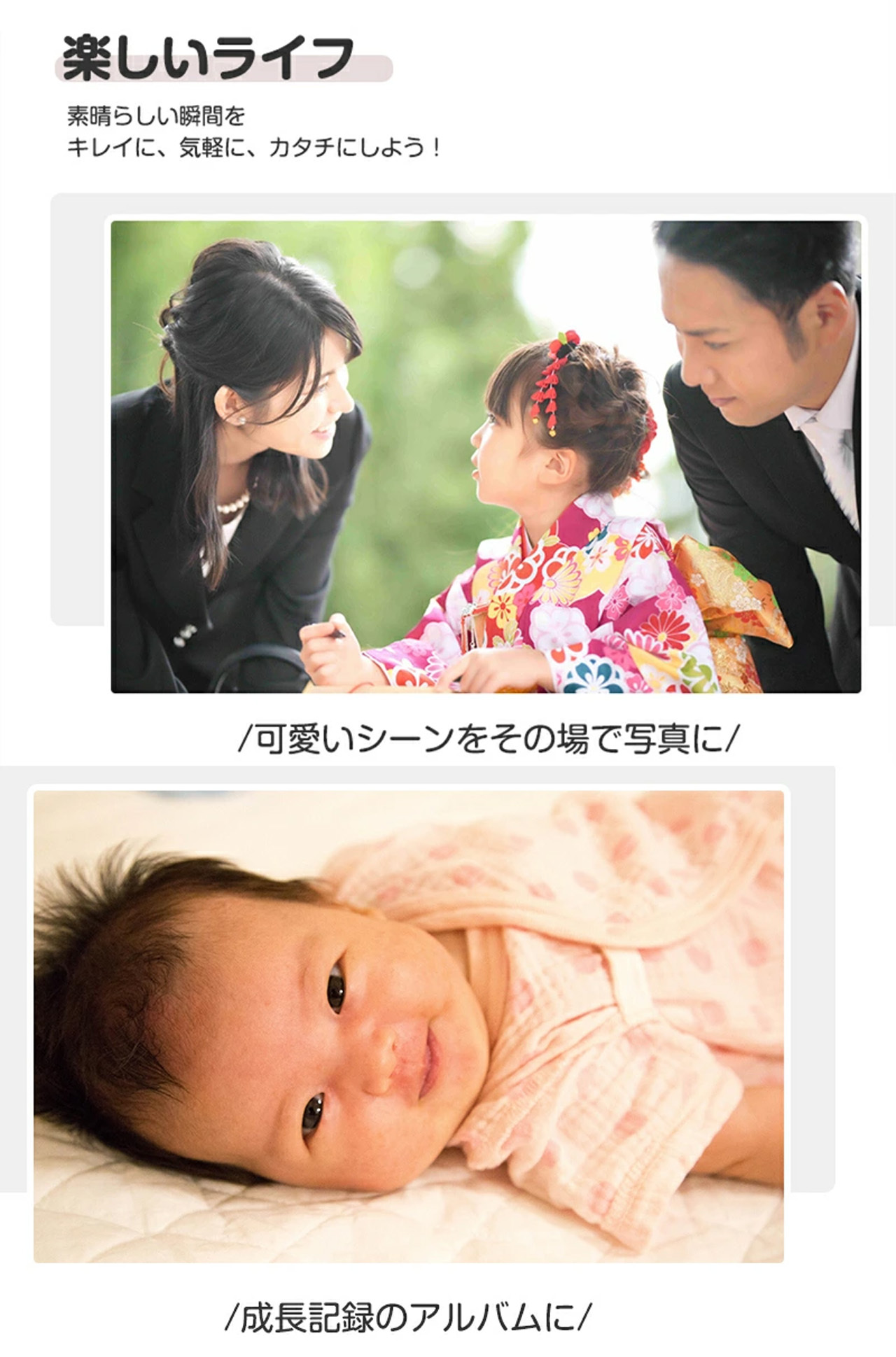 電源には内蔵バッテリー(USB充電)を使用するため、コンセントがない野外でも場所を選ばず気軽に使用できるのも魅力。旅行やパーティーなど外出先で積極的にフォトプリンターを活用したい方におすすめです。