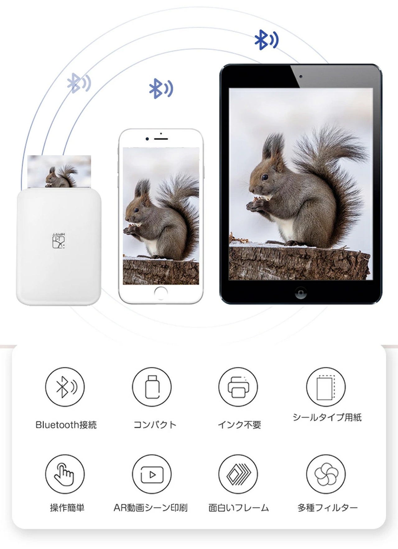 1.Bluetooth接続:WiFi 不要で手軽にプリント
