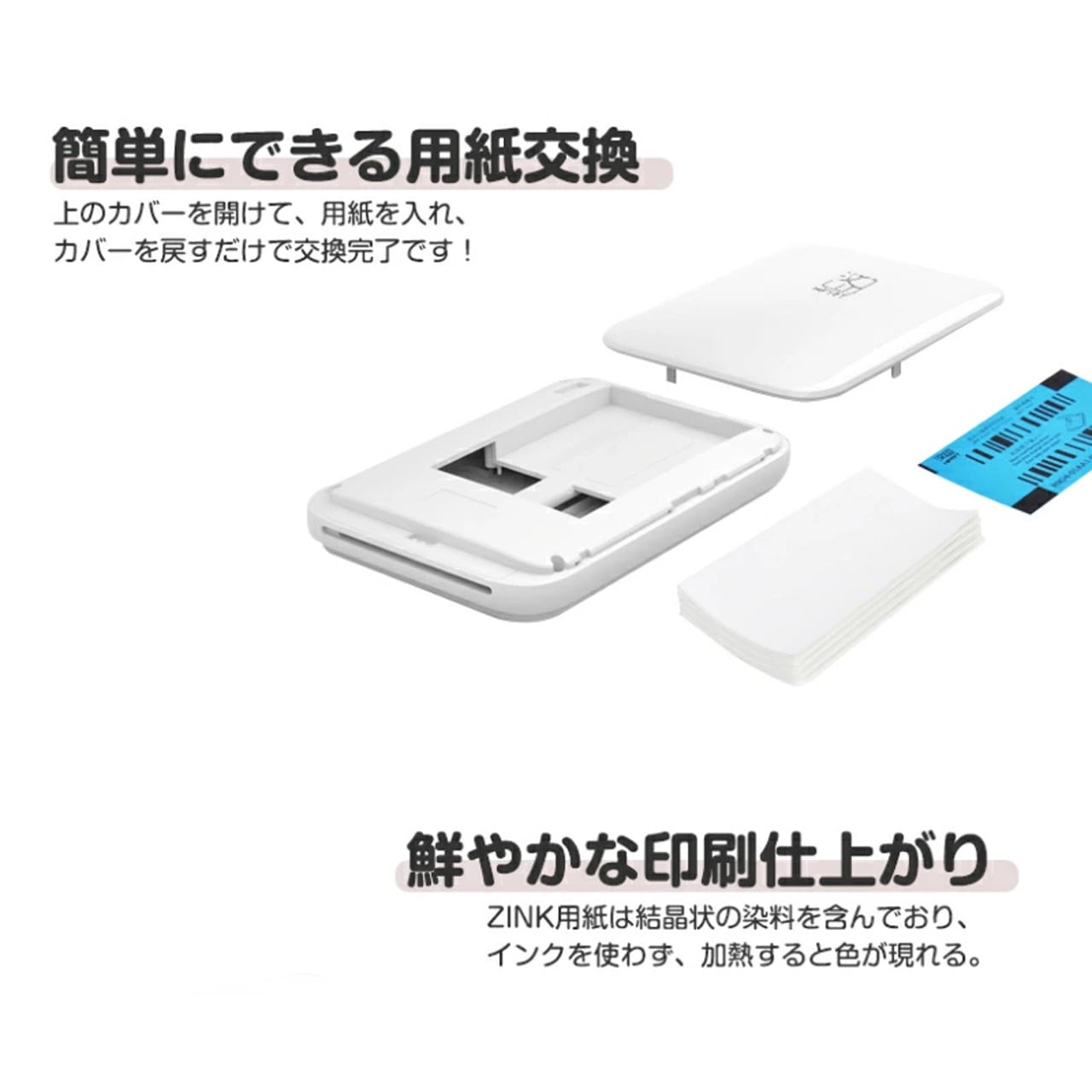 2.インク不要: ZINK印刷技術を採用!