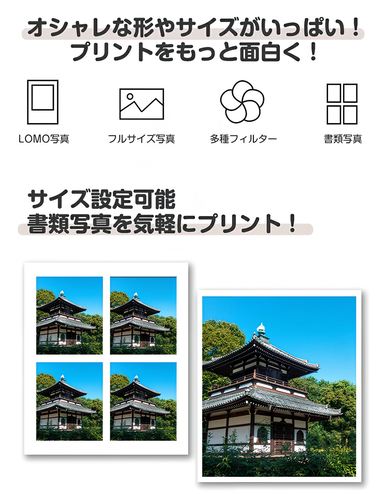 テンプレートを内蔵:様々な写真サイズに対応する