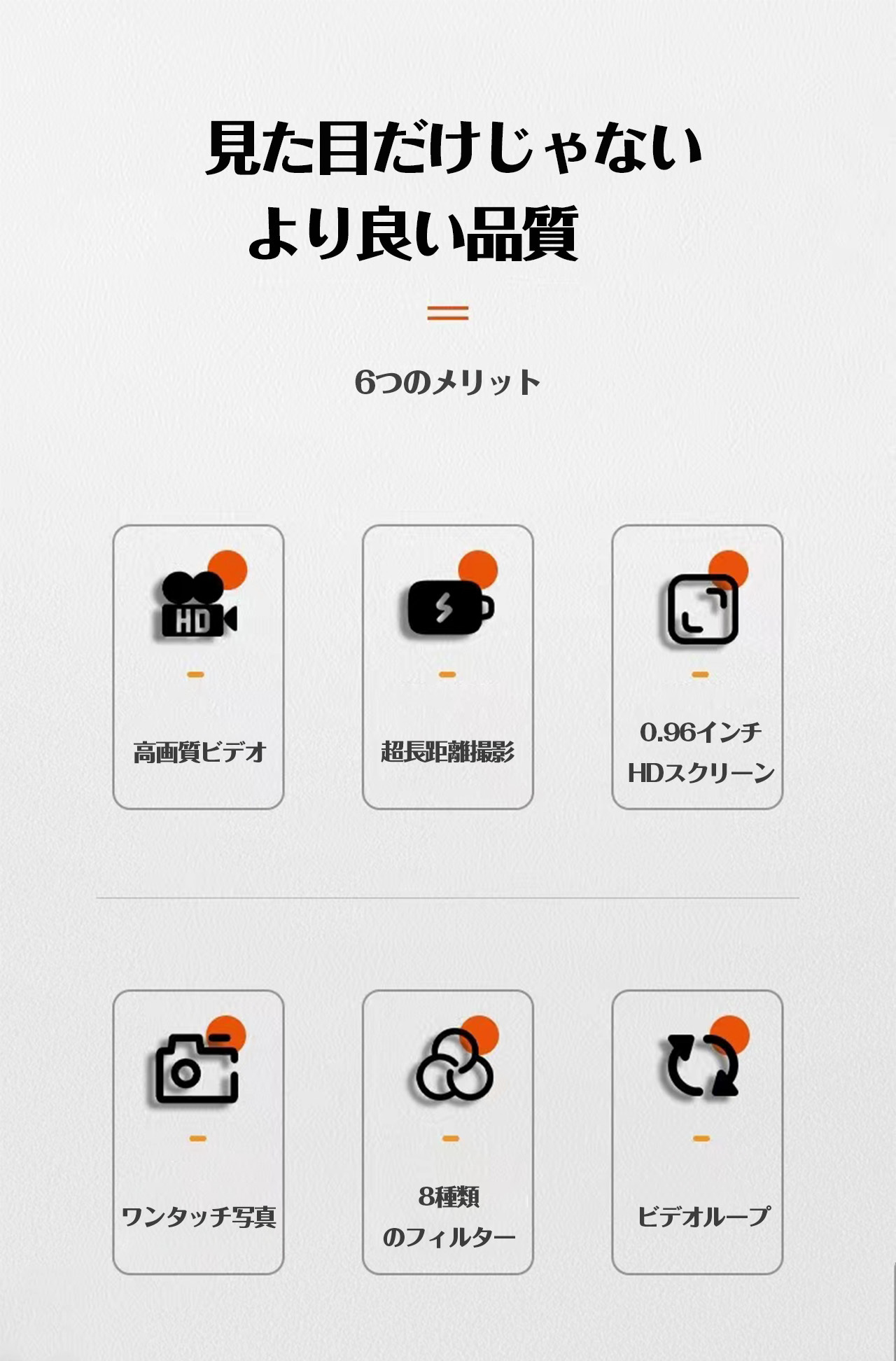 ■ 機能:8種類フィルター/ループ録画/無音撮影/手ぶれ補正