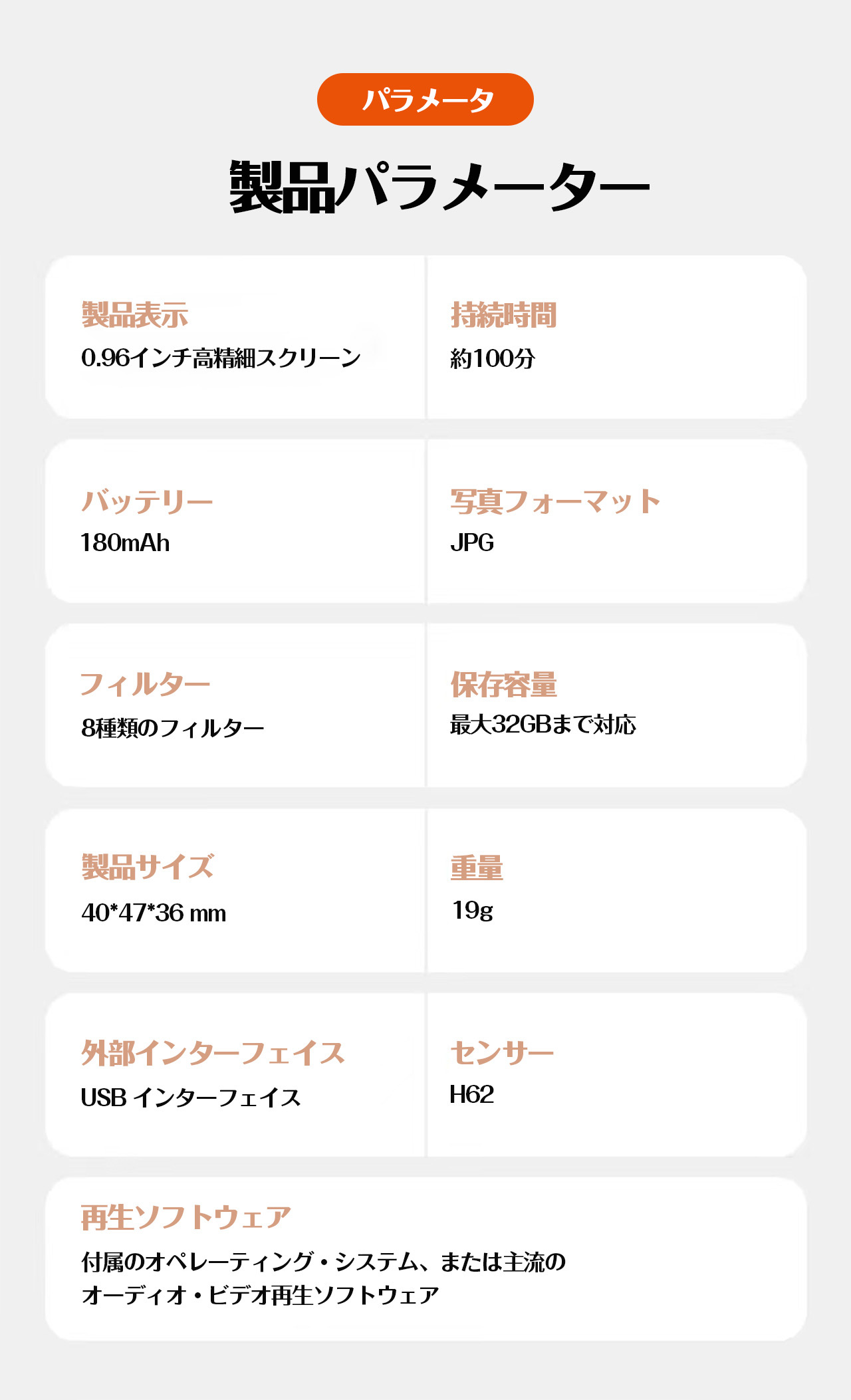 【製品パラメーター】
