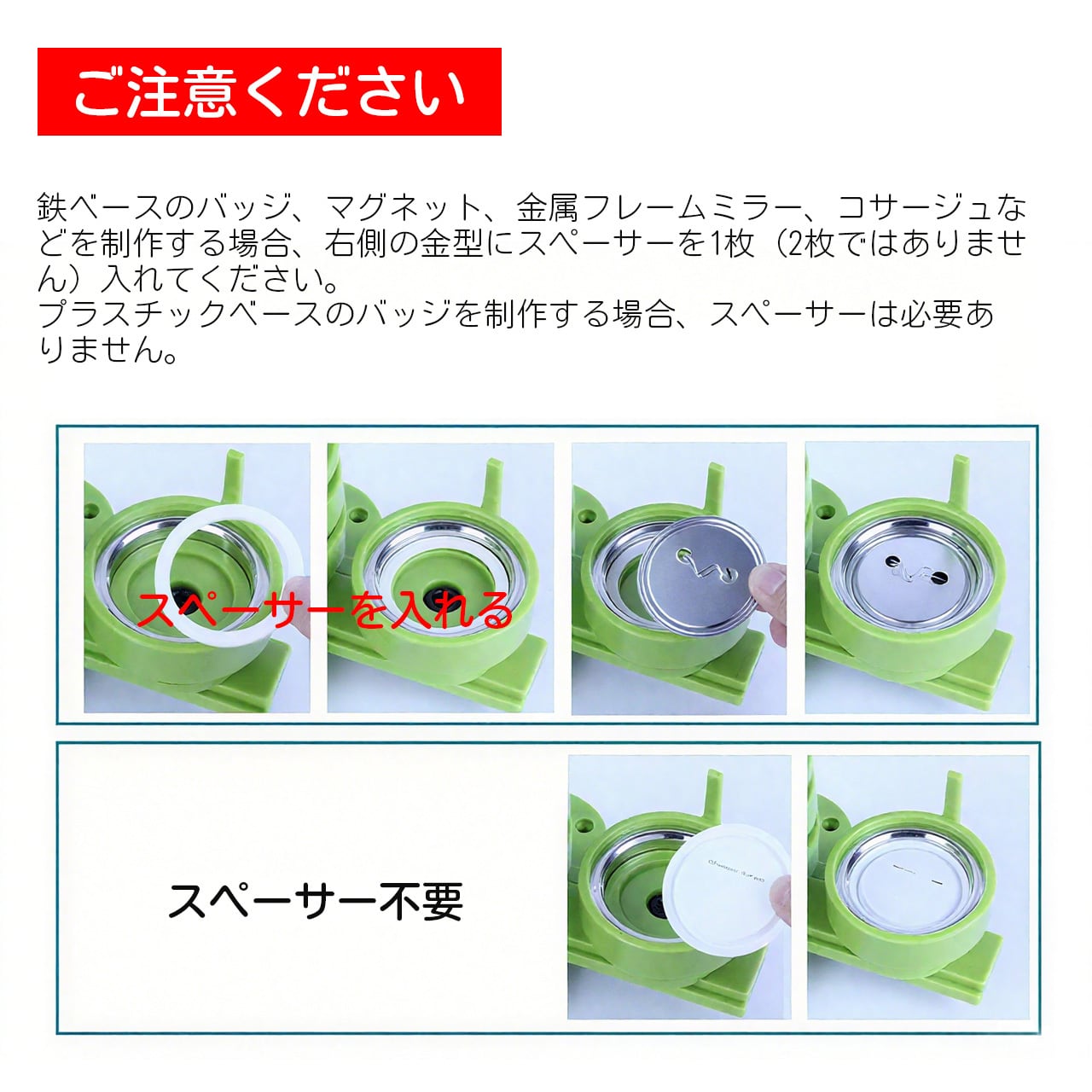 → 調整可能なパッド付き、金属/プラスチック基底に簡単に切り替え可能、バッジ、マグネット、ミラー、コサージュを自由に作成できる