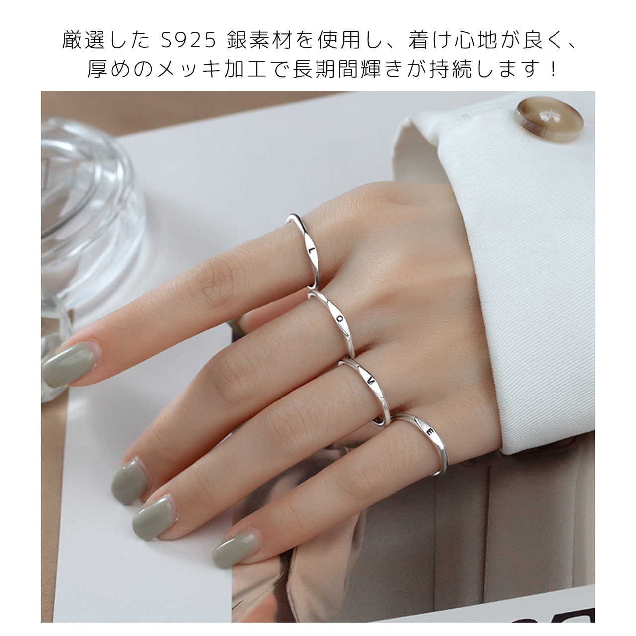 → 高級ホワイトゴールドメッキ技術、硬度が高く、摩耗に強い。酸化を遅らせ、輝きを長時間保ちます