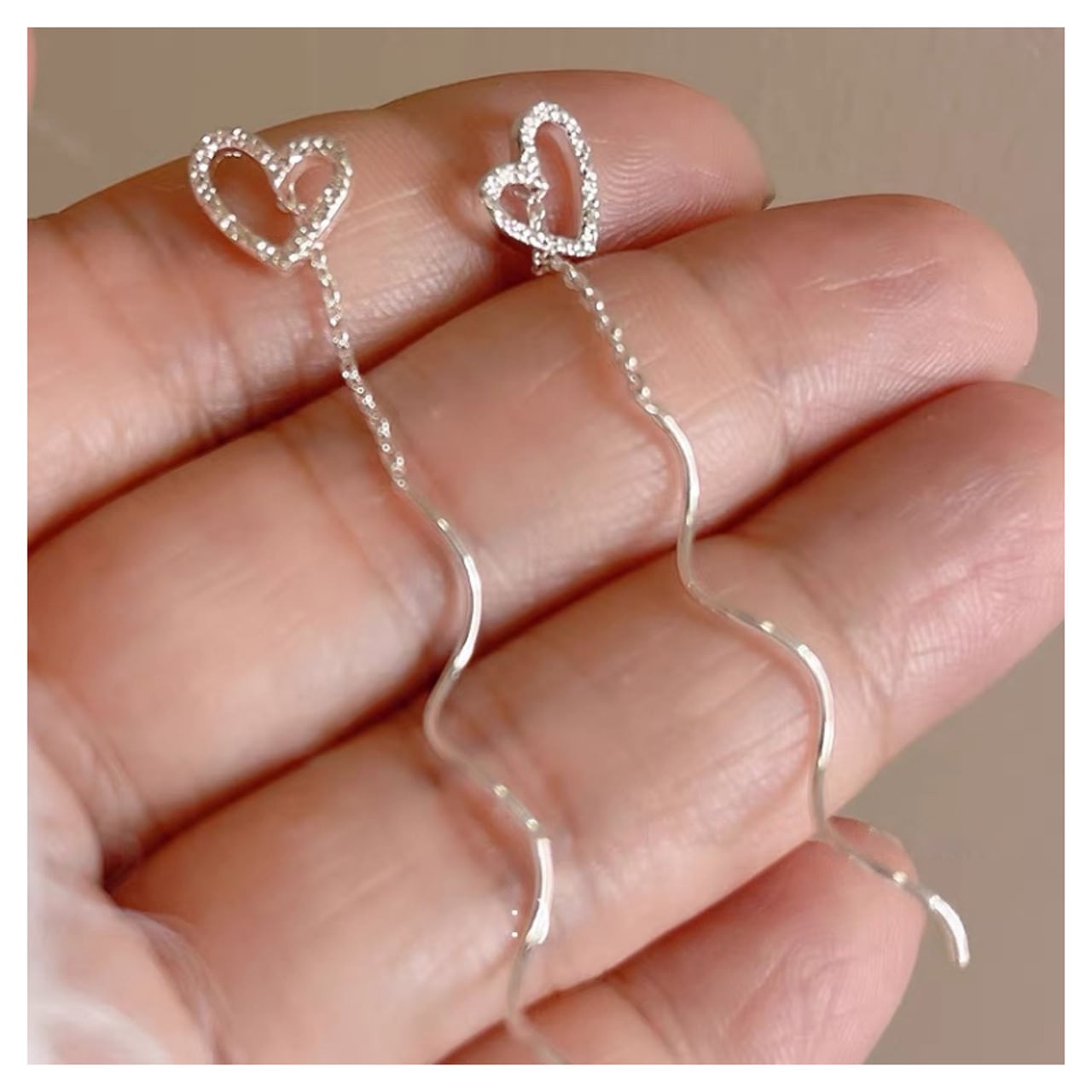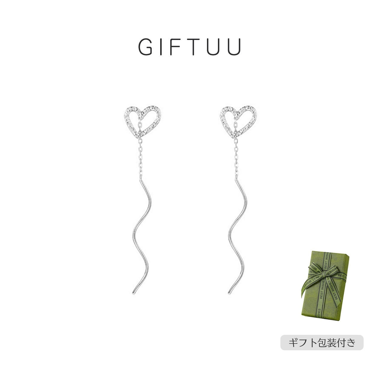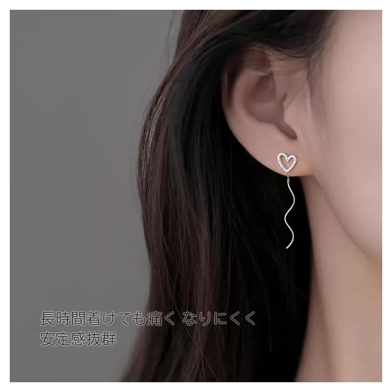 ■ 品名:ハートチェーンイヤリング/ピアス(ロングウェーブタイプ)