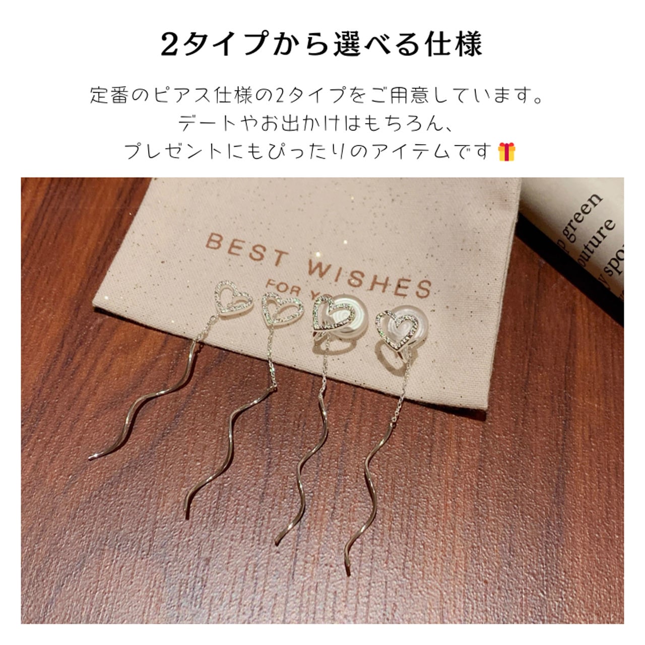 ✅ 繊細なハート×ウェーブデザイン