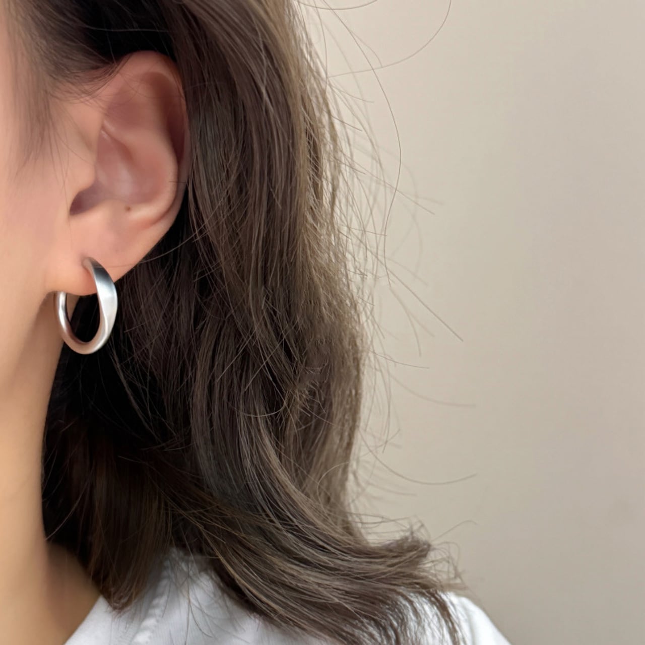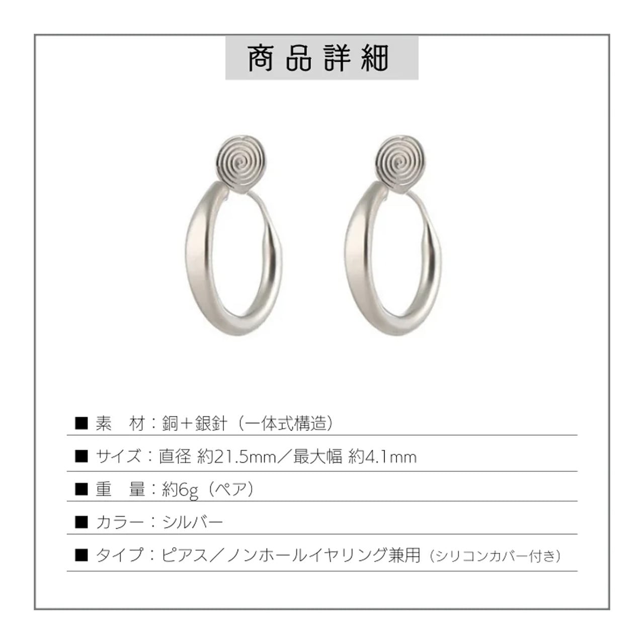 ■ 品名:マットシルバー フープピアス(蚊香盤風デザイン)