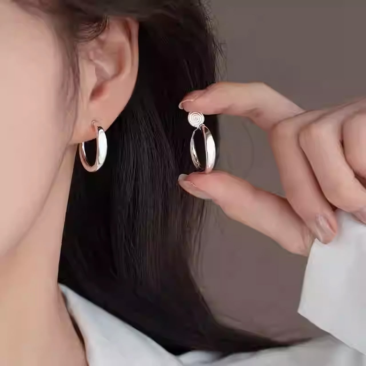 B201 .シルバー フープピアス 一体型イヤリング ノンホール シンプル