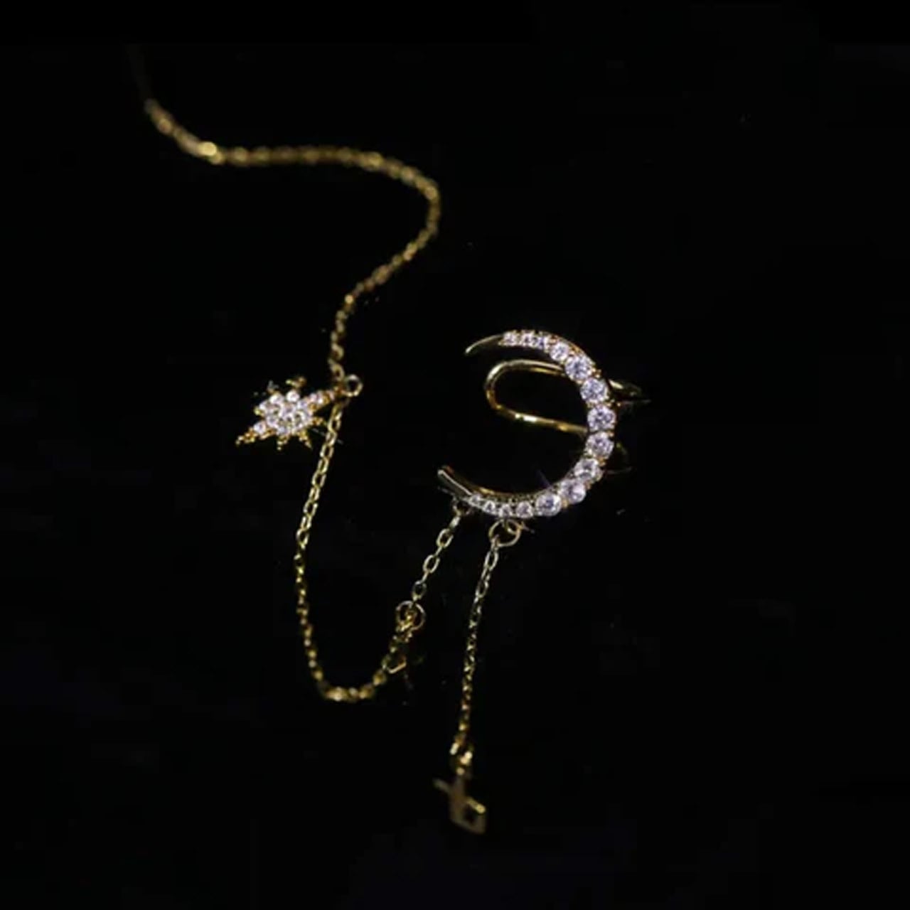 「スターリバーロマンス」が詰まった耳飾り!イヤーカフの柔らかい曲線が “星の川の流れ” を表現し、ピアスのクリアストーンが星の輝きを再現。ピアスをしている方はイヤーカフと組み合わせ、個性的なレイヤードスタイルを楽しめる —— デートやパーティーで、誰よりも惹きつけるアクセサリーです✨