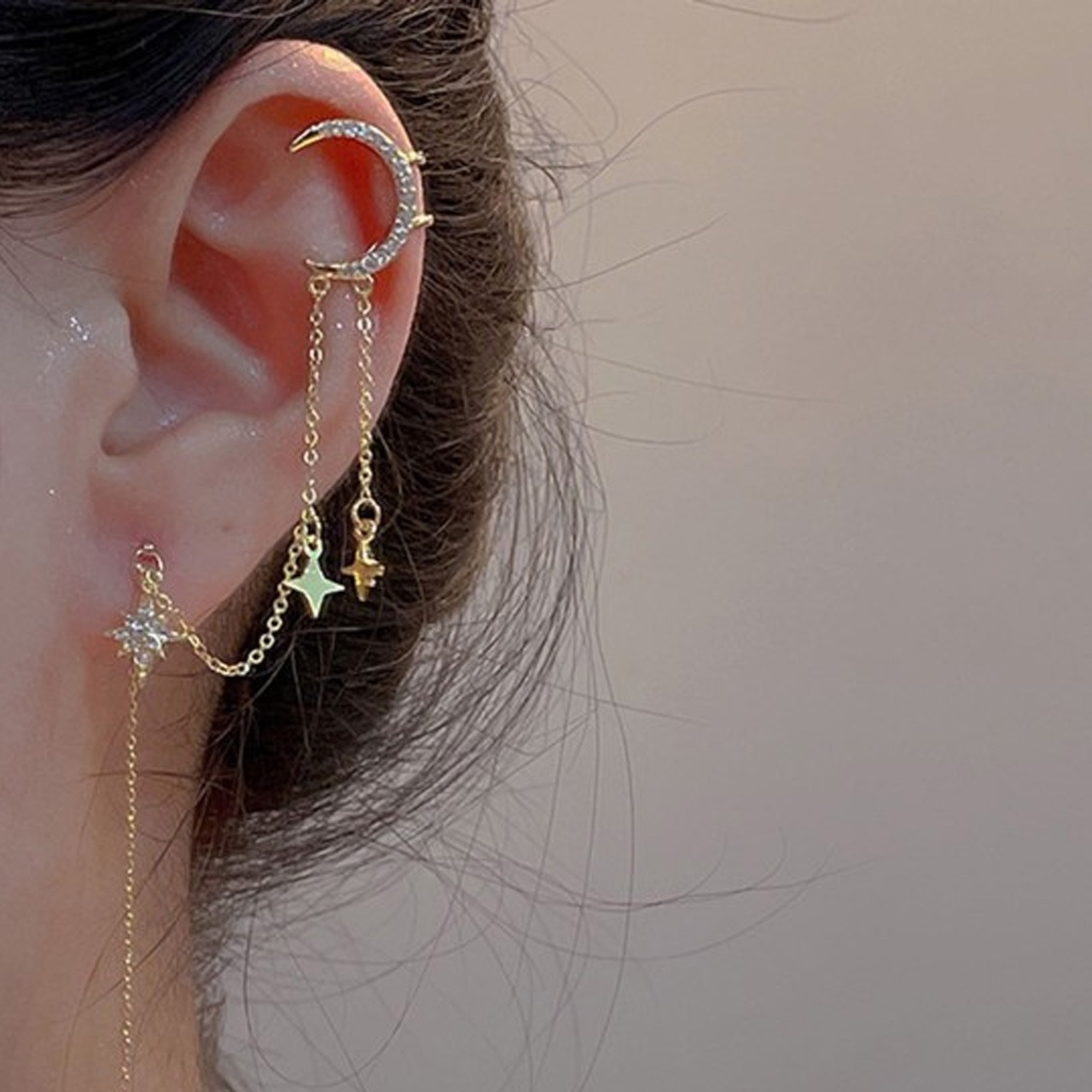 耳元に広がる星の川!「スターリバーロマンス」イヤーカフ & ピアスで、毎日にロマンチックな輝きを。イヤーカフが耳たぶのラインを優雅に包み、ピアスの小さな星屑が光にきらめき —— 一対で着用すれば立体的な可愛さ、単体でもシンプルな魅力を届けます✨