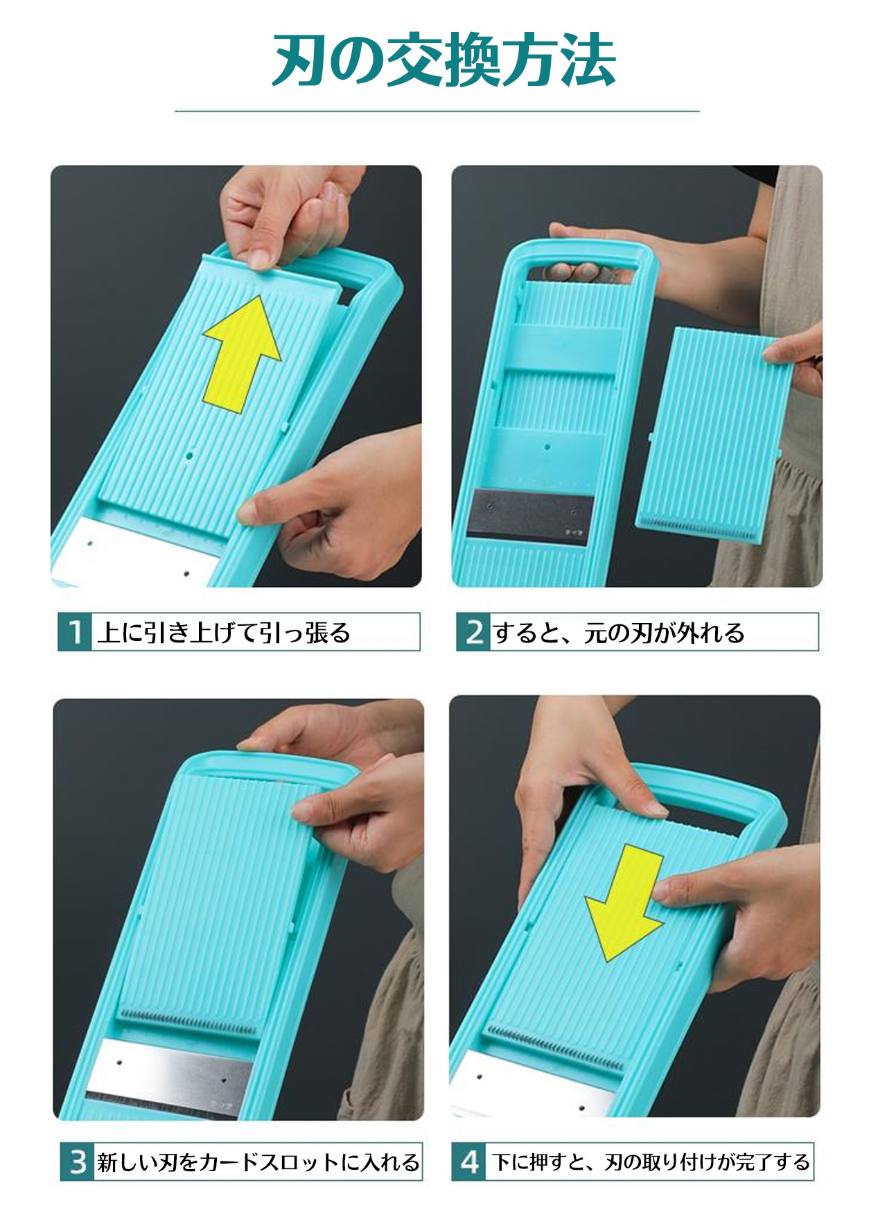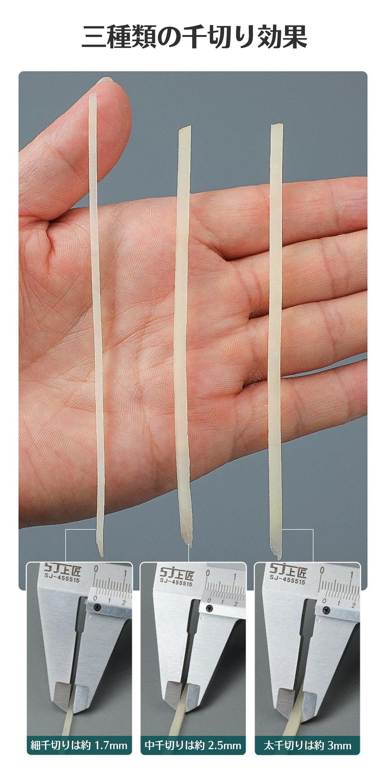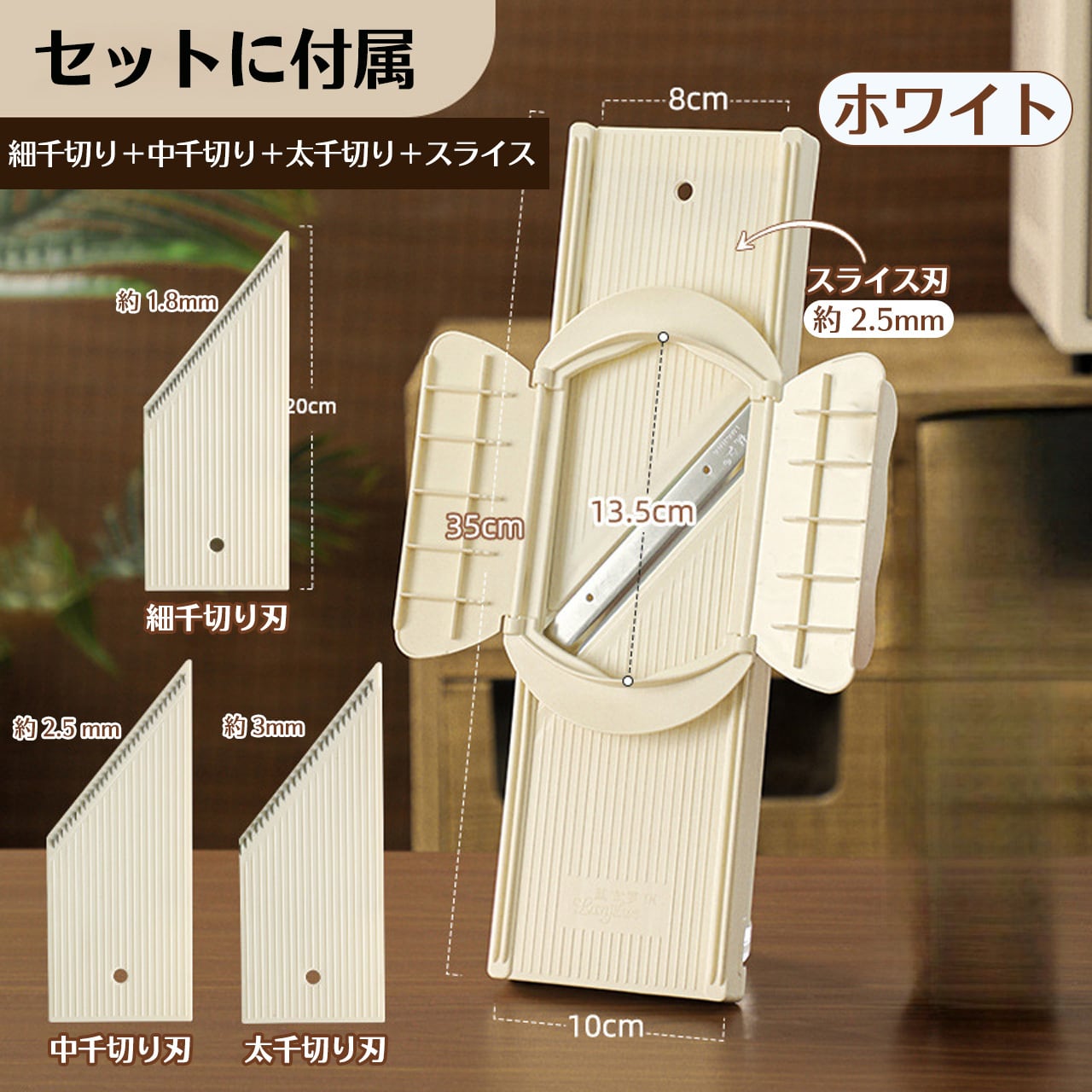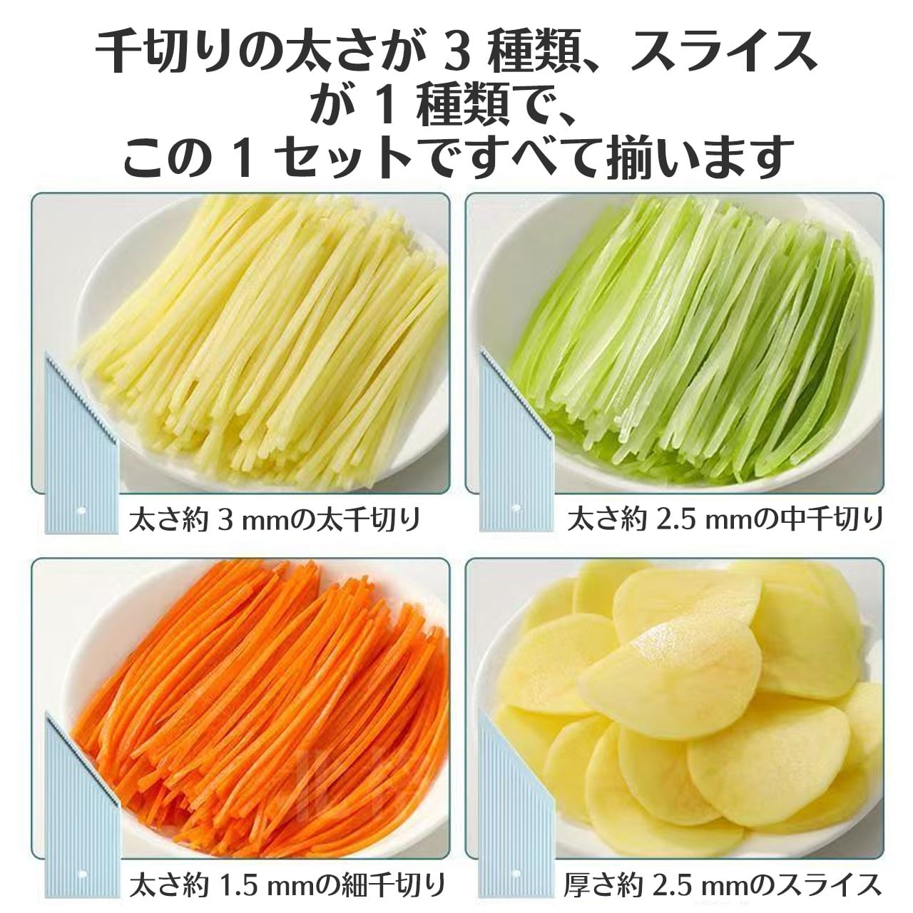 セット:細千切り(1.8mm)+中千切り(2.5mm)+太千切り(3mm)+スライス(2.5mm)