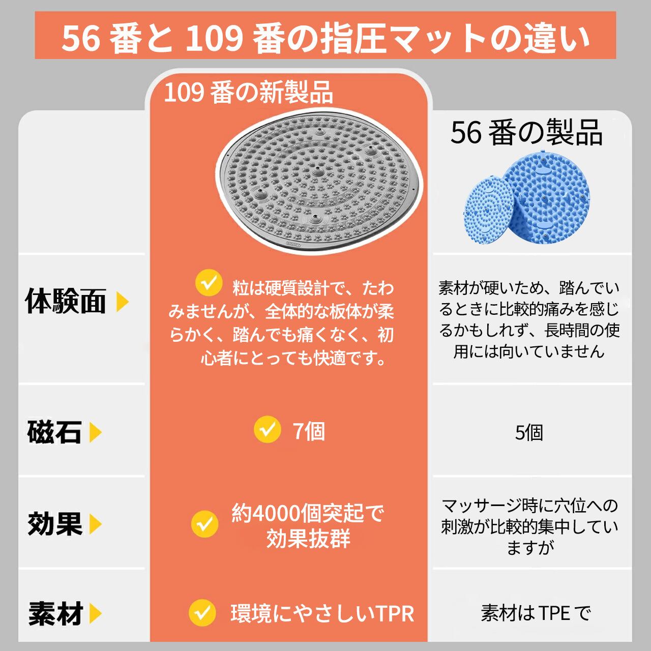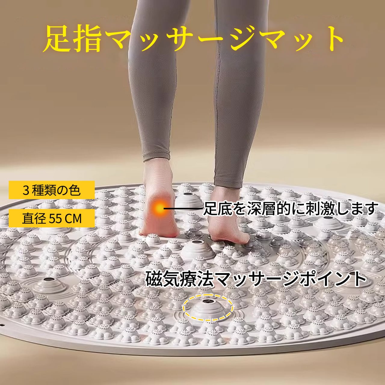 109 .足マッサージ パッド TPR製 足つぼマット 磁石付き 55cm フットマッサージマット 足ツボ押し 指圧板運動マッサージ 足のリラックス 足裏マッサージ 解圧マット 滑り止め 足踏み ツボ押しマット フットヨガマッサージ 折り畳み可能 人間工学指圧パッド
