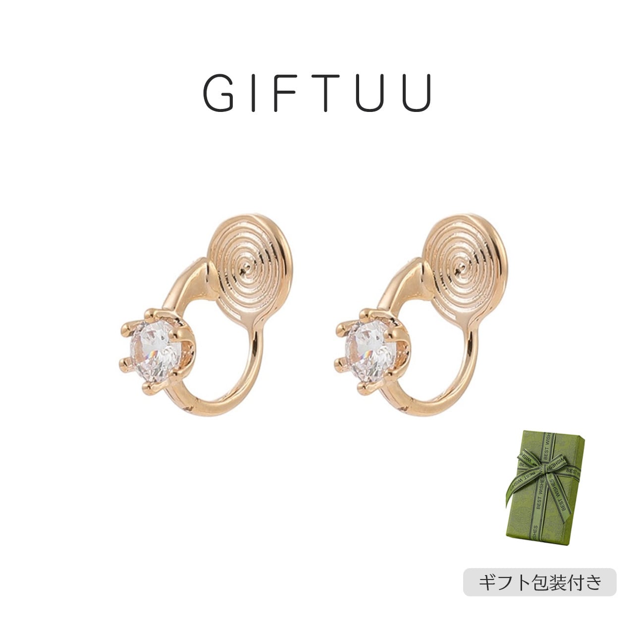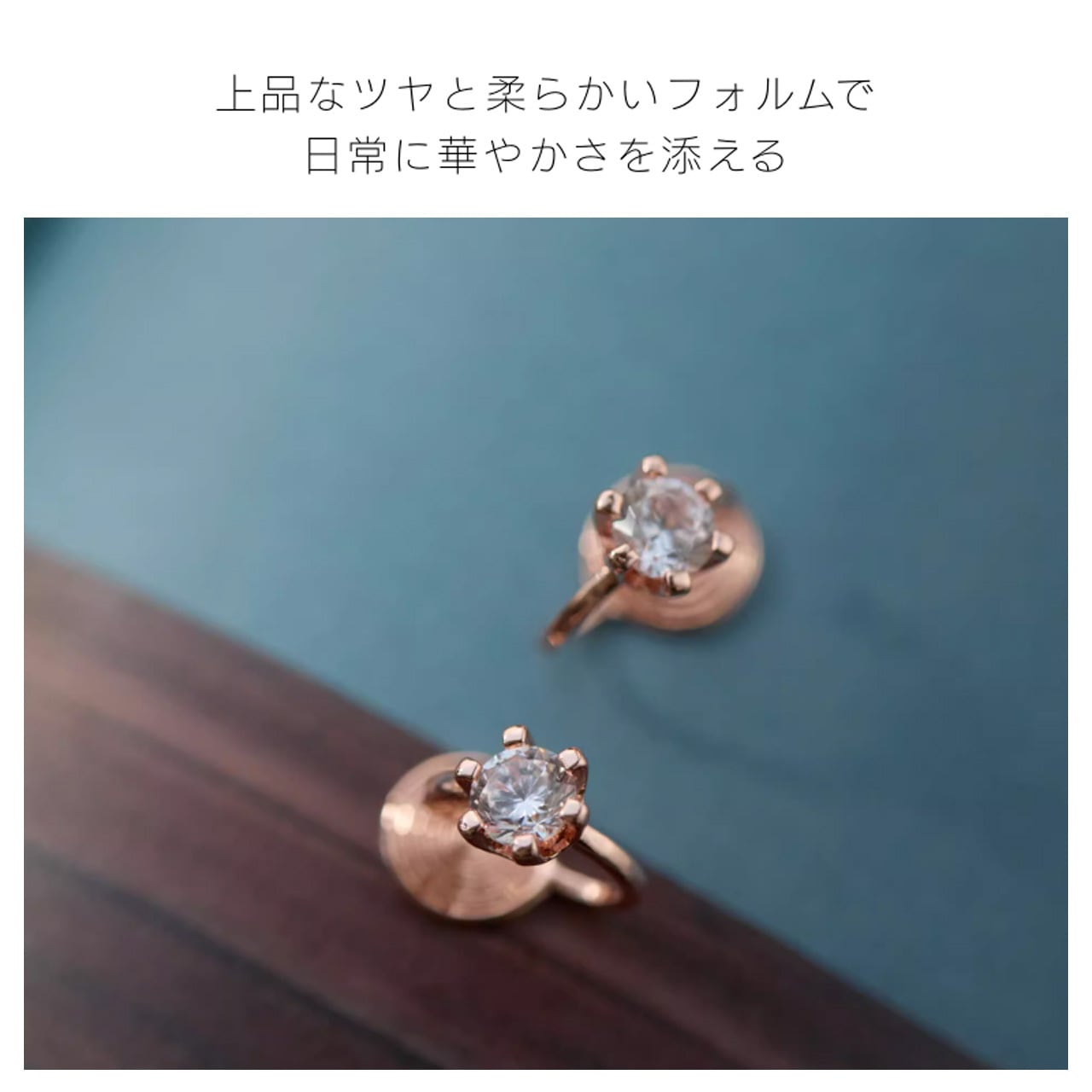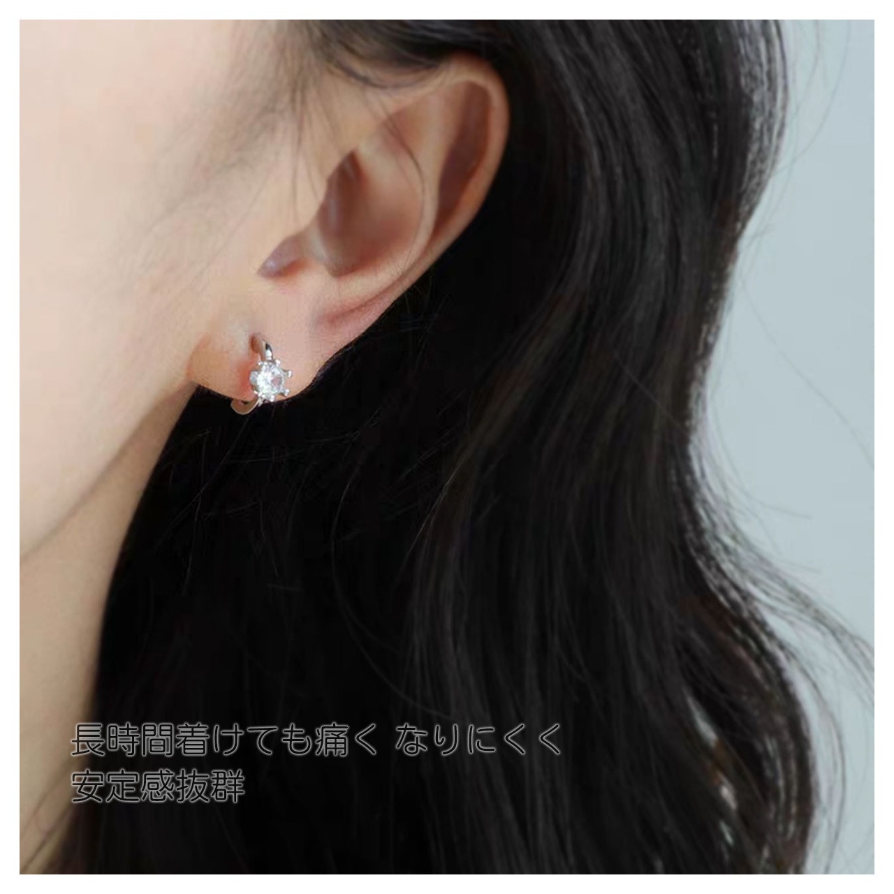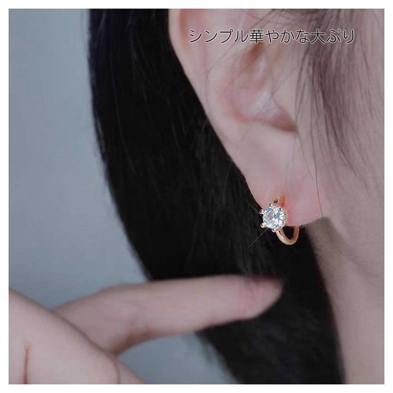 ・丸く輝くジルコンを金属の台座に爪留めし、強い光沢と上品な雰囲気を演出します。コーディネートにさりげないアクセントを加え、ピアスホールがなくても違和感なく着用できます。