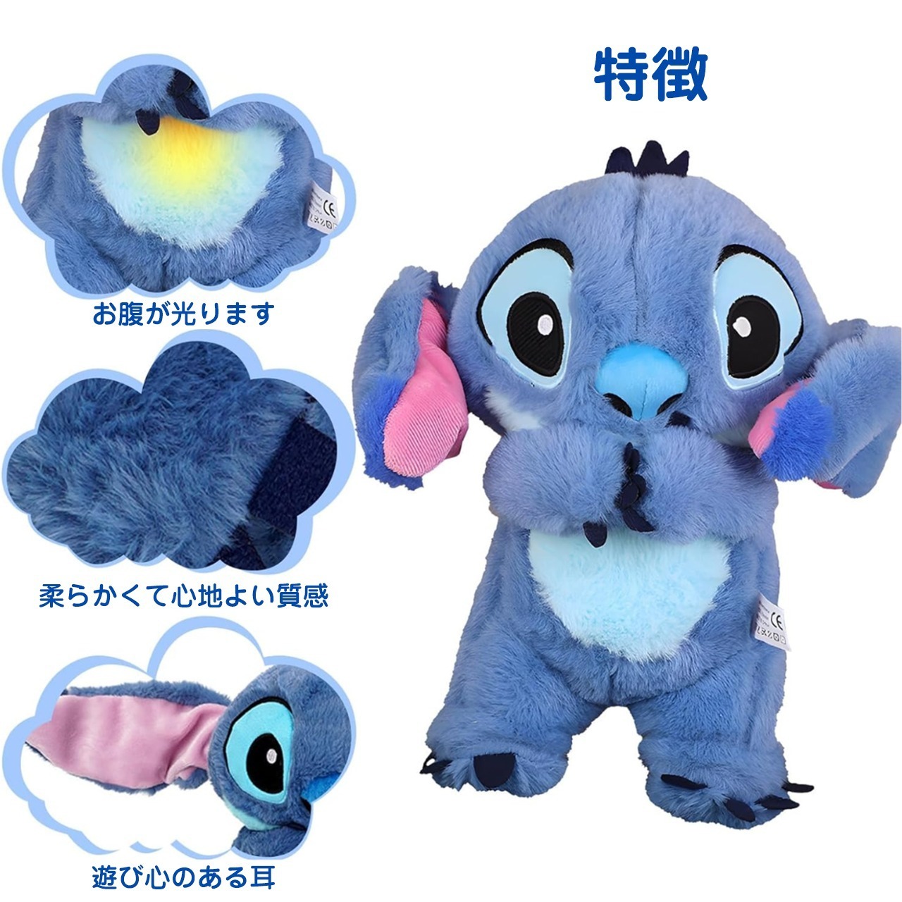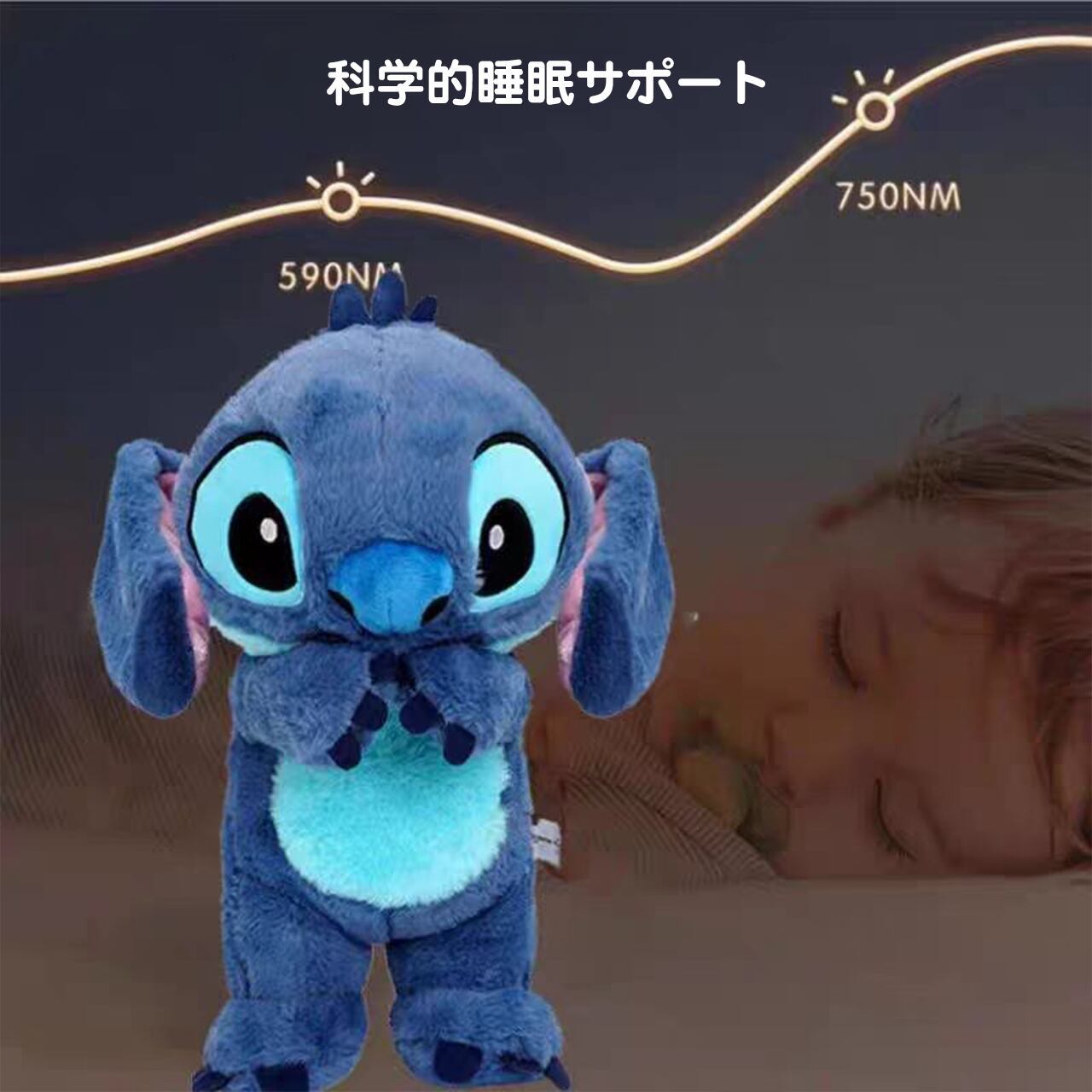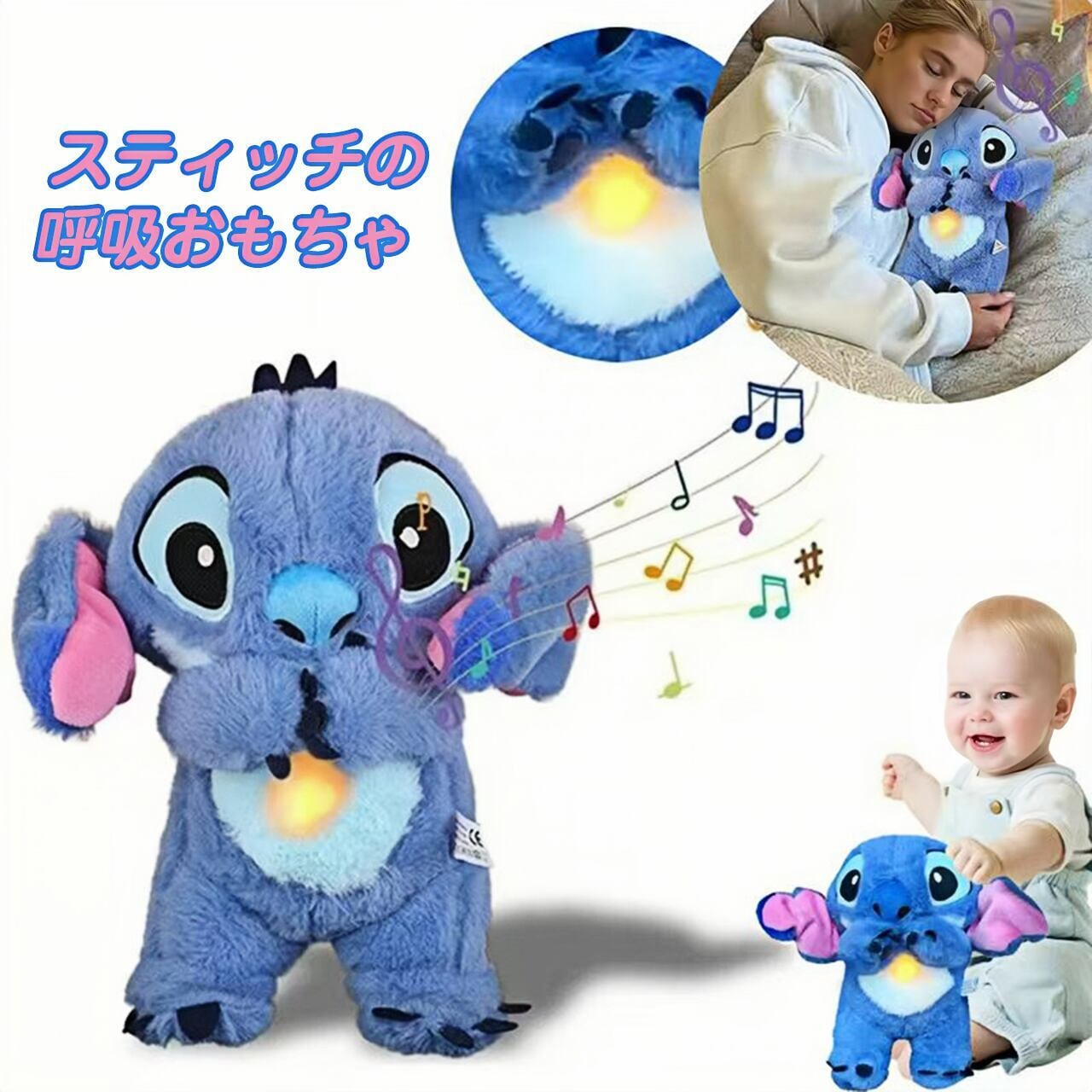 B48 .【ブランド公式】呼吸するぬいぐるみおもちゃ、眠りのお伴 スティッチのおもちゃ、赤ちゃんを癒す音楽ぬいぐるみ