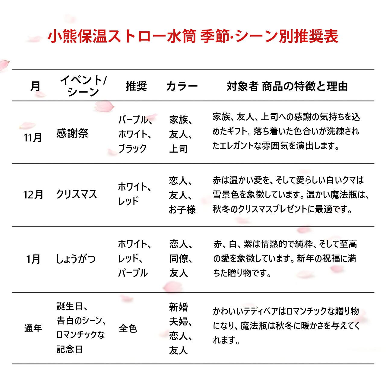 → 長時間保温6時間、保冷12時間、温冷両方対応、四季を通じて活躍。