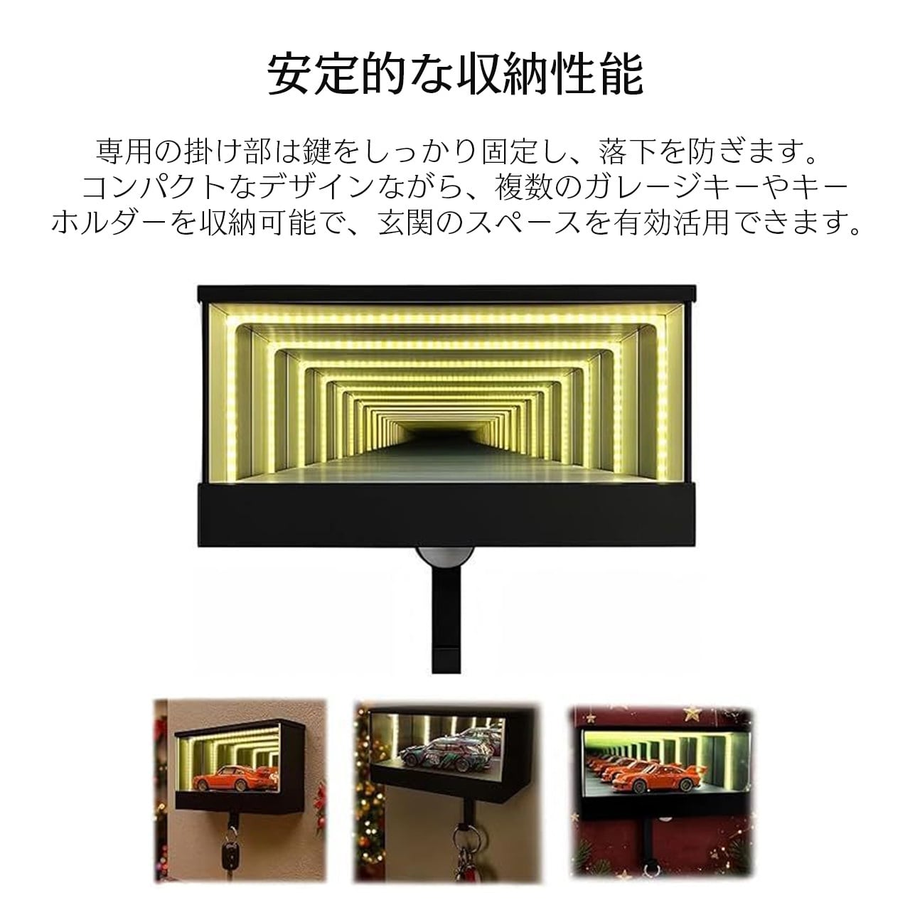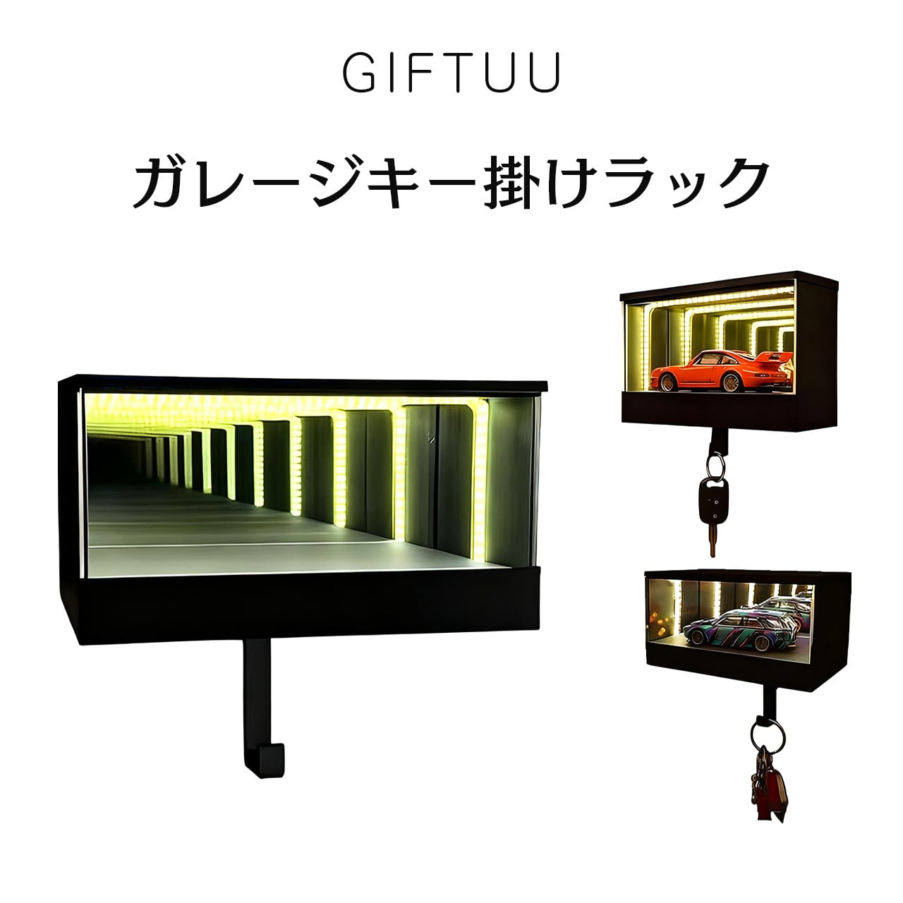 玄関の壁、ガレージ入口の壁面などに取り付け可能。日常的なガレージキーの収納はもちろん、訪問者の目を引くインテリアアイテムとしても活躍します。鍵の紛失を防ぎ、生活の便利さと空間の美感を両立させます。