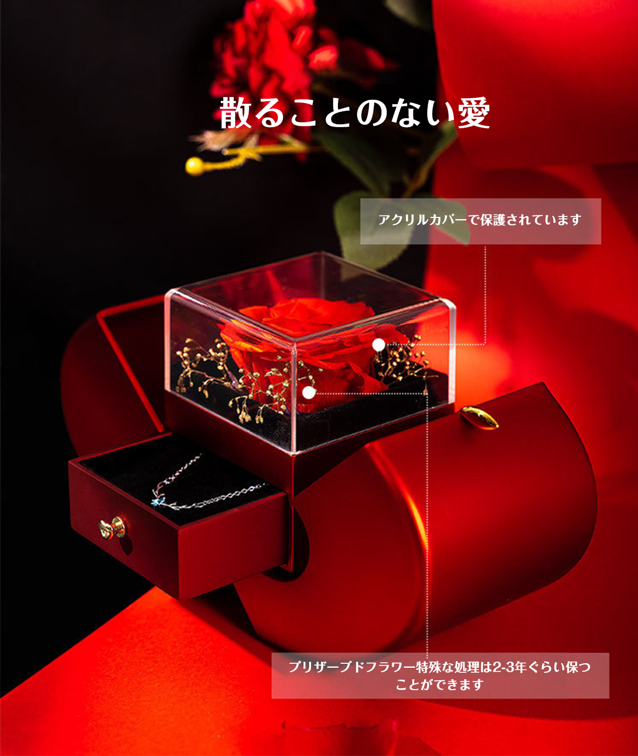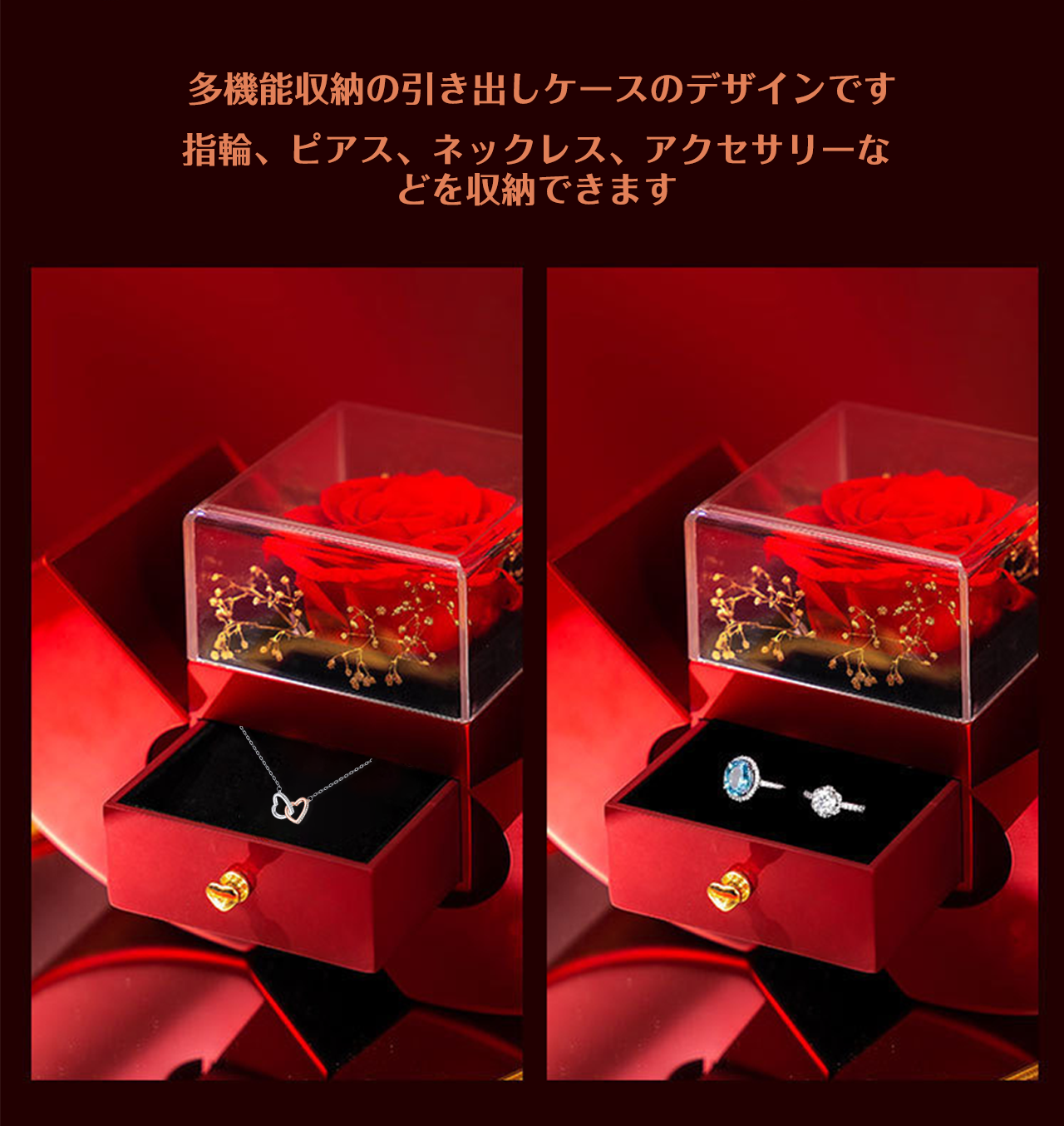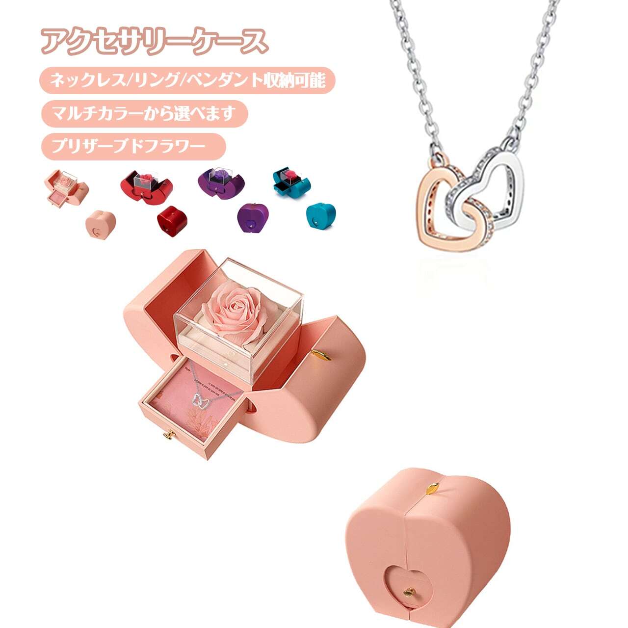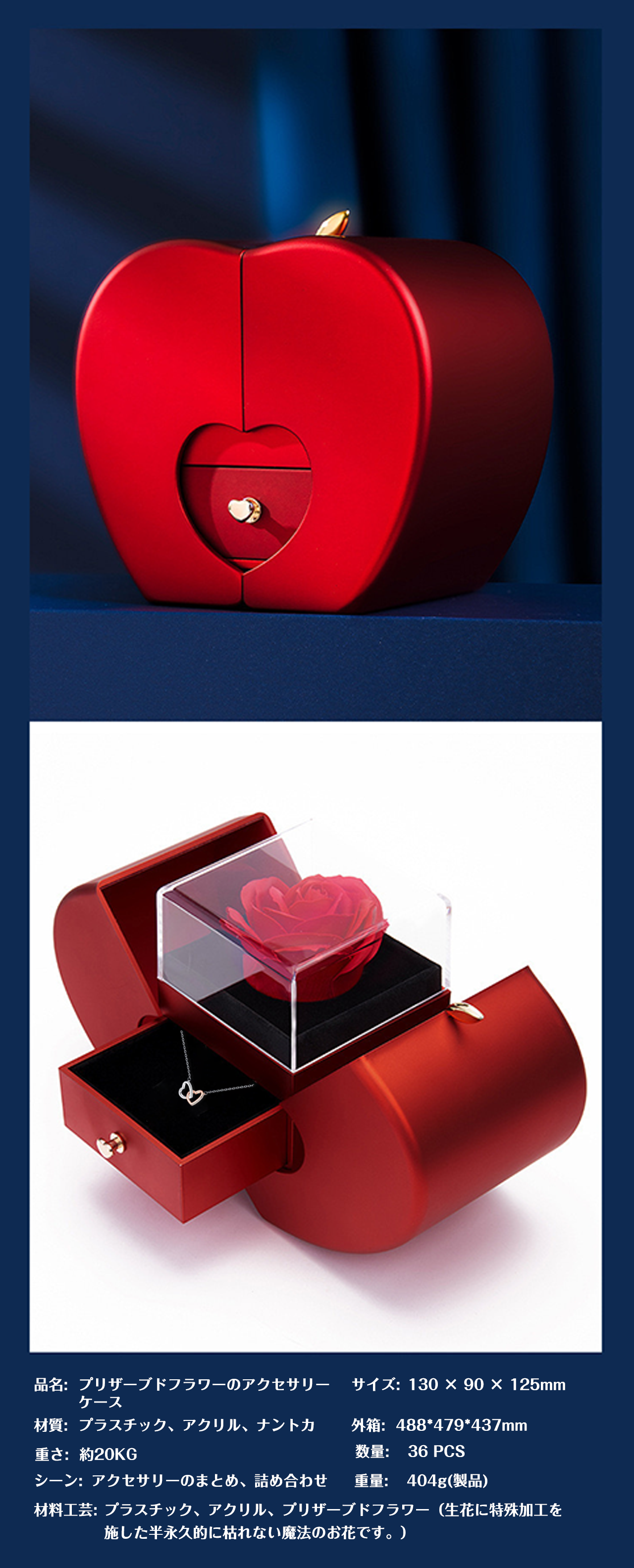 B4 .プリザーブドフラワーリンゴアクセサリーケースジュエリーギフトケースローズリングネックレスパッケージ収納ケース【ネックレスはアレルギー防止の金属】