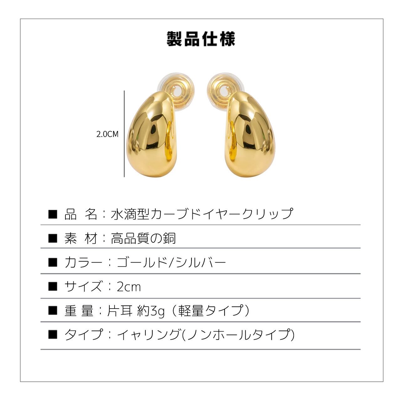 B228 .水滴型カーブドビーズイヤークリップ イヤーカフ(耳夹め)