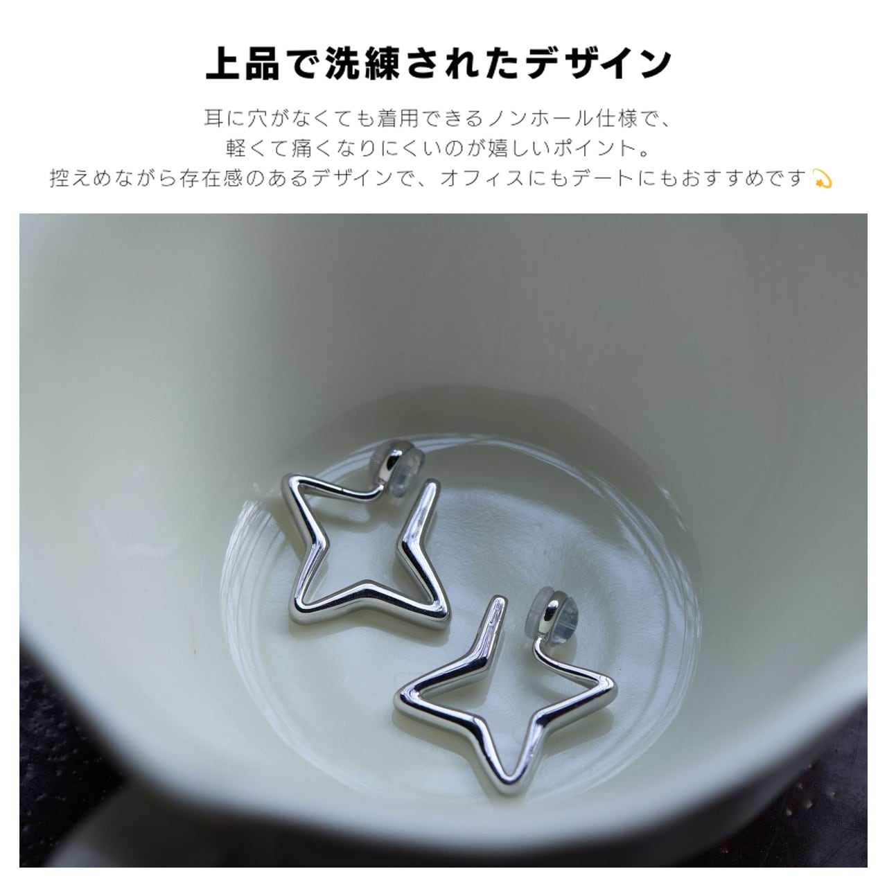 B230 .スターイヤークリップ シンプル リングデザイン ピアス穴なし
