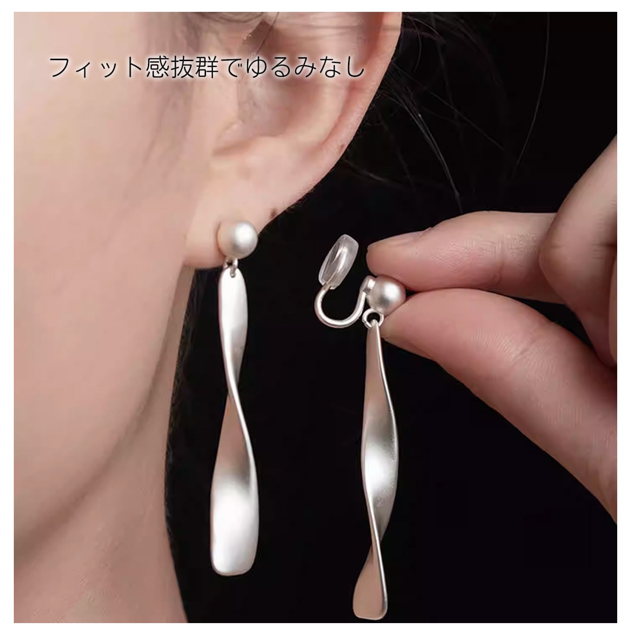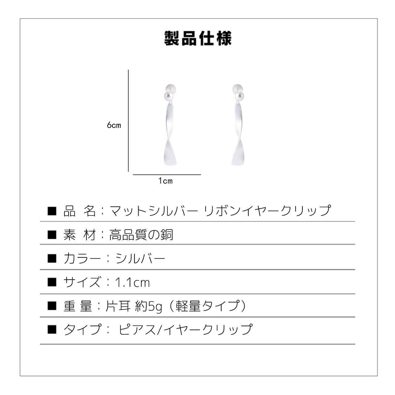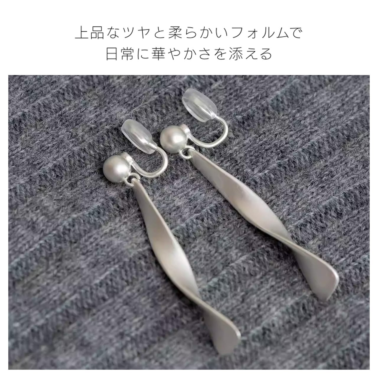 B238 .レトロマットシルバー リボンイヤーアクセサリー ピアス穴なし