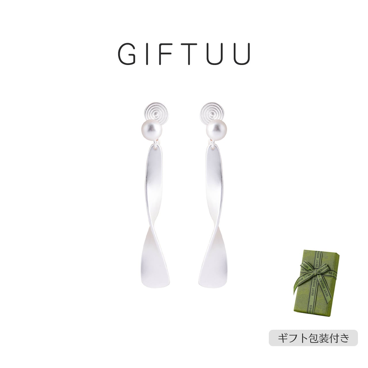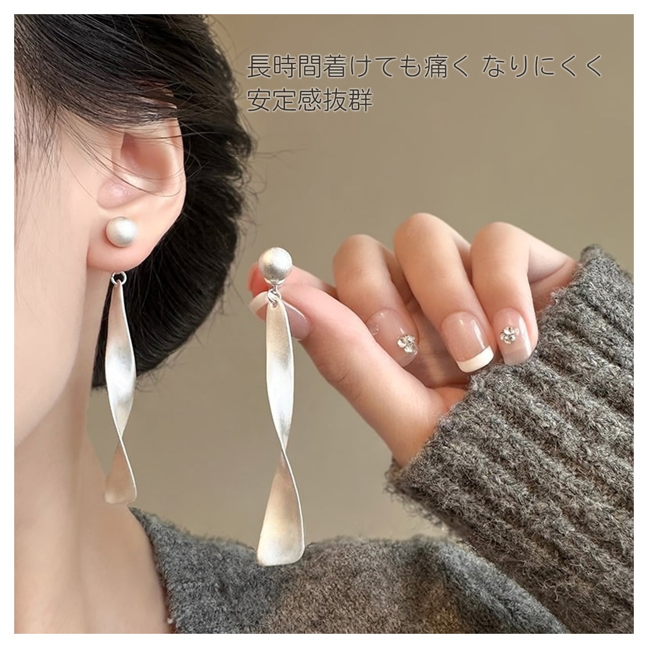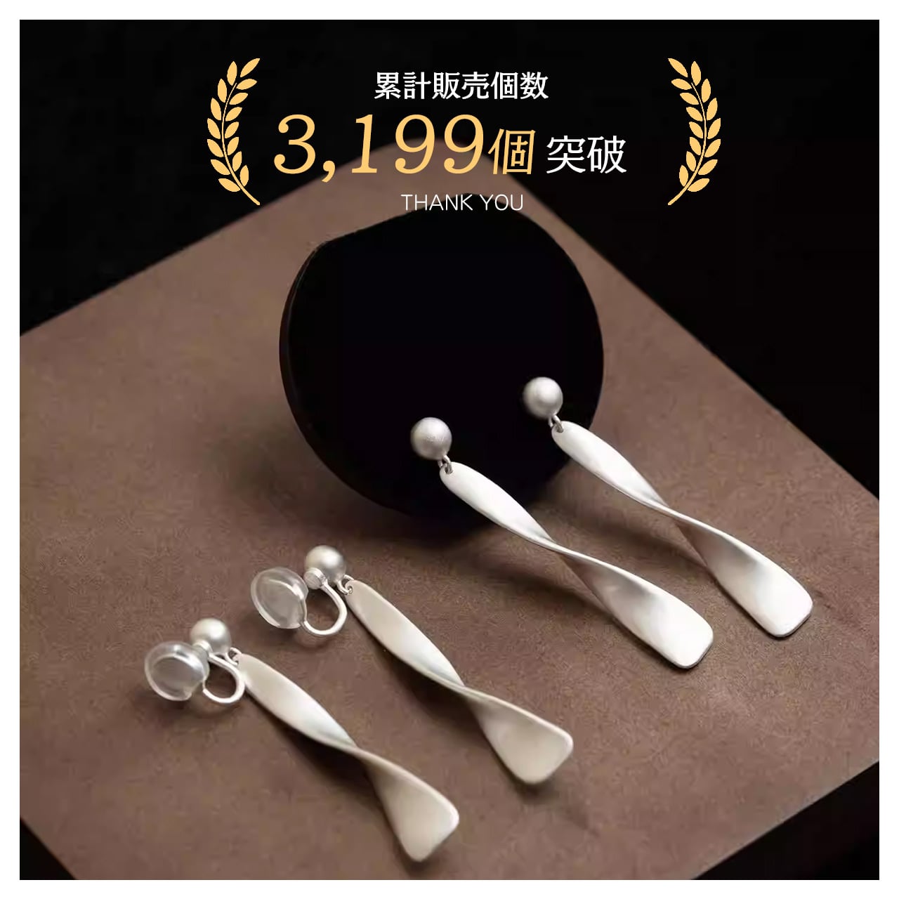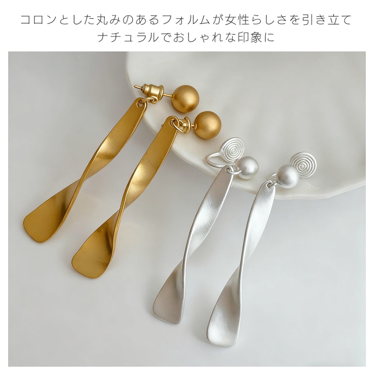 B238 .レトロマットシルバー リボンイヤーアクセサリー ピアス穴なし