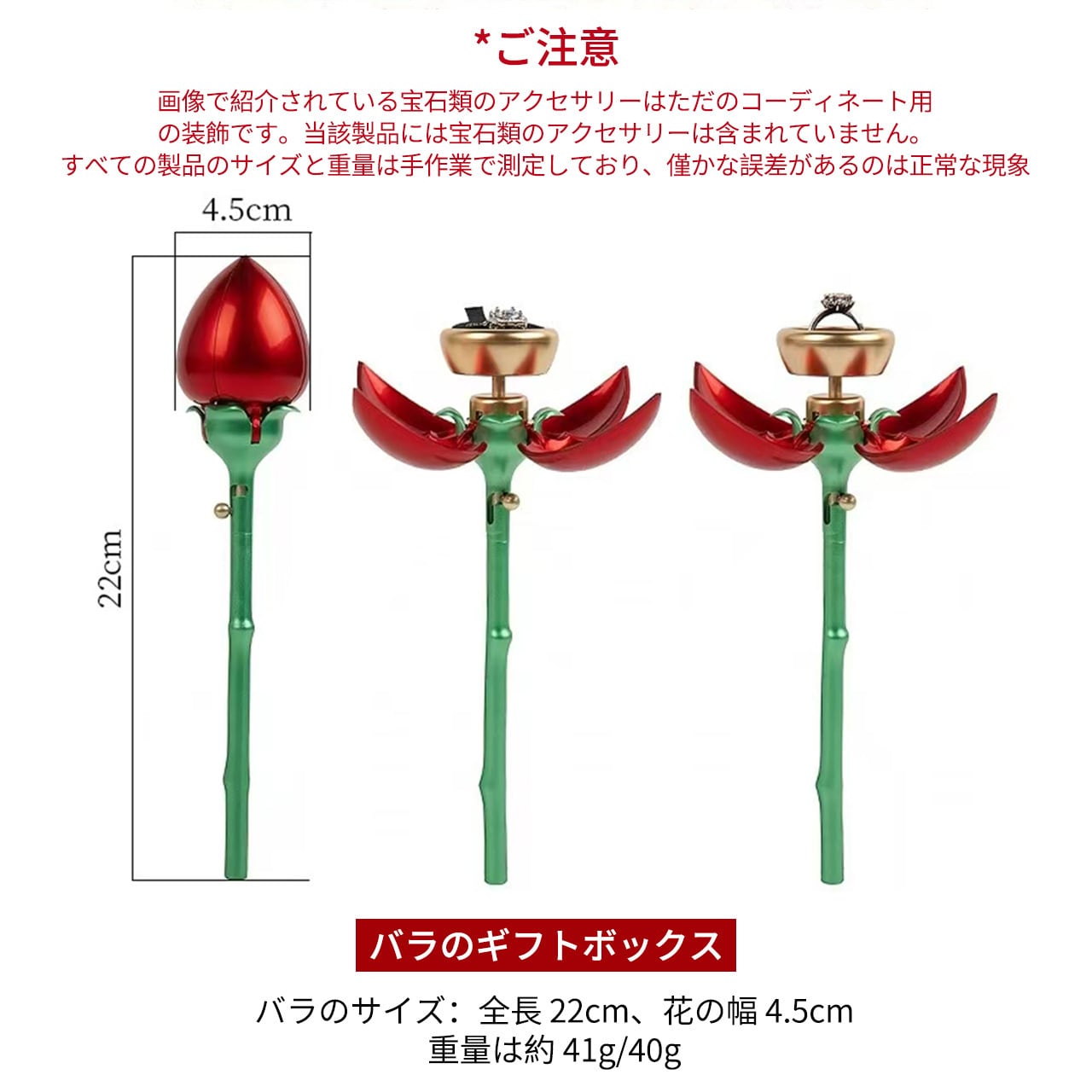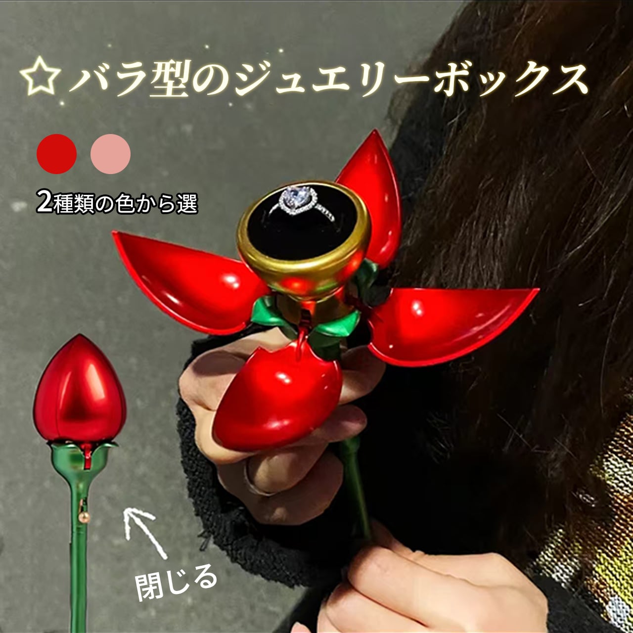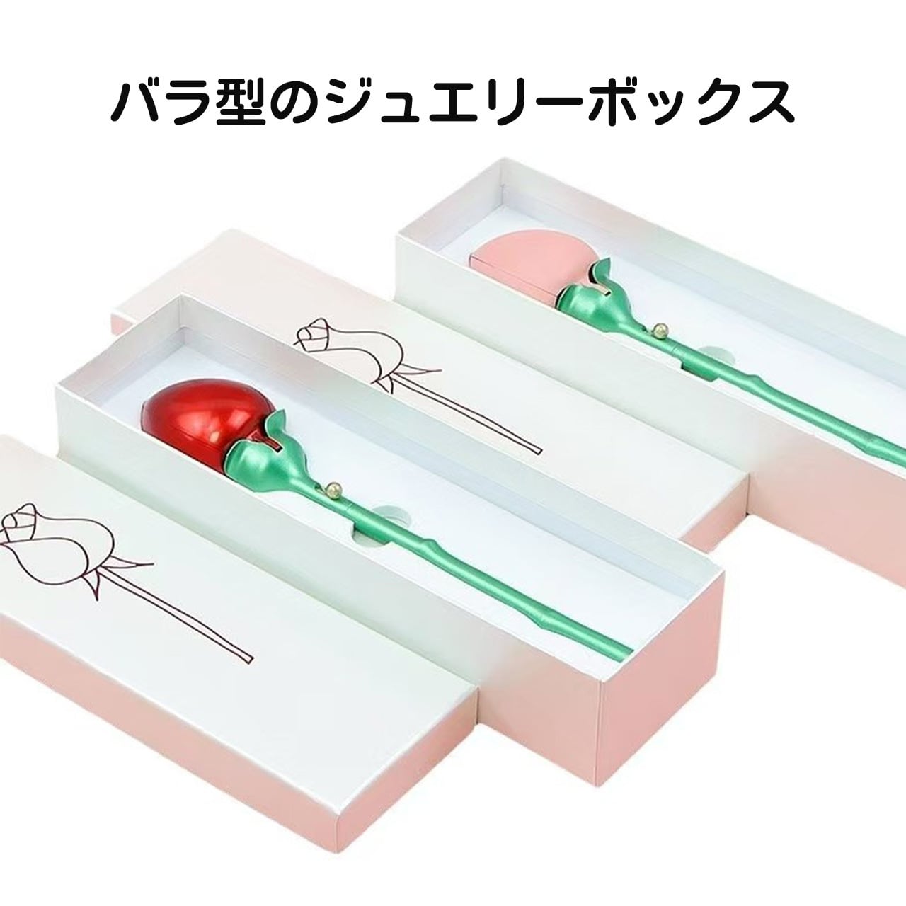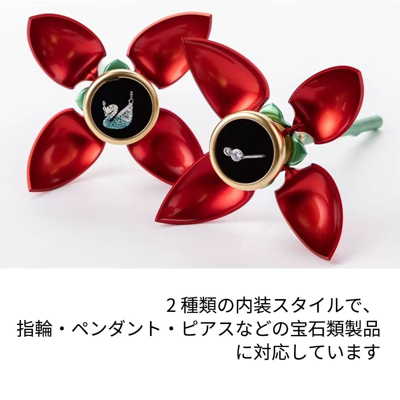 B240 .バラ 1 本型アクセサリーケース 回転式指輪収納 反転ネックレスボックス 花開きデザイン 人気クリエイティブサプライズボックス