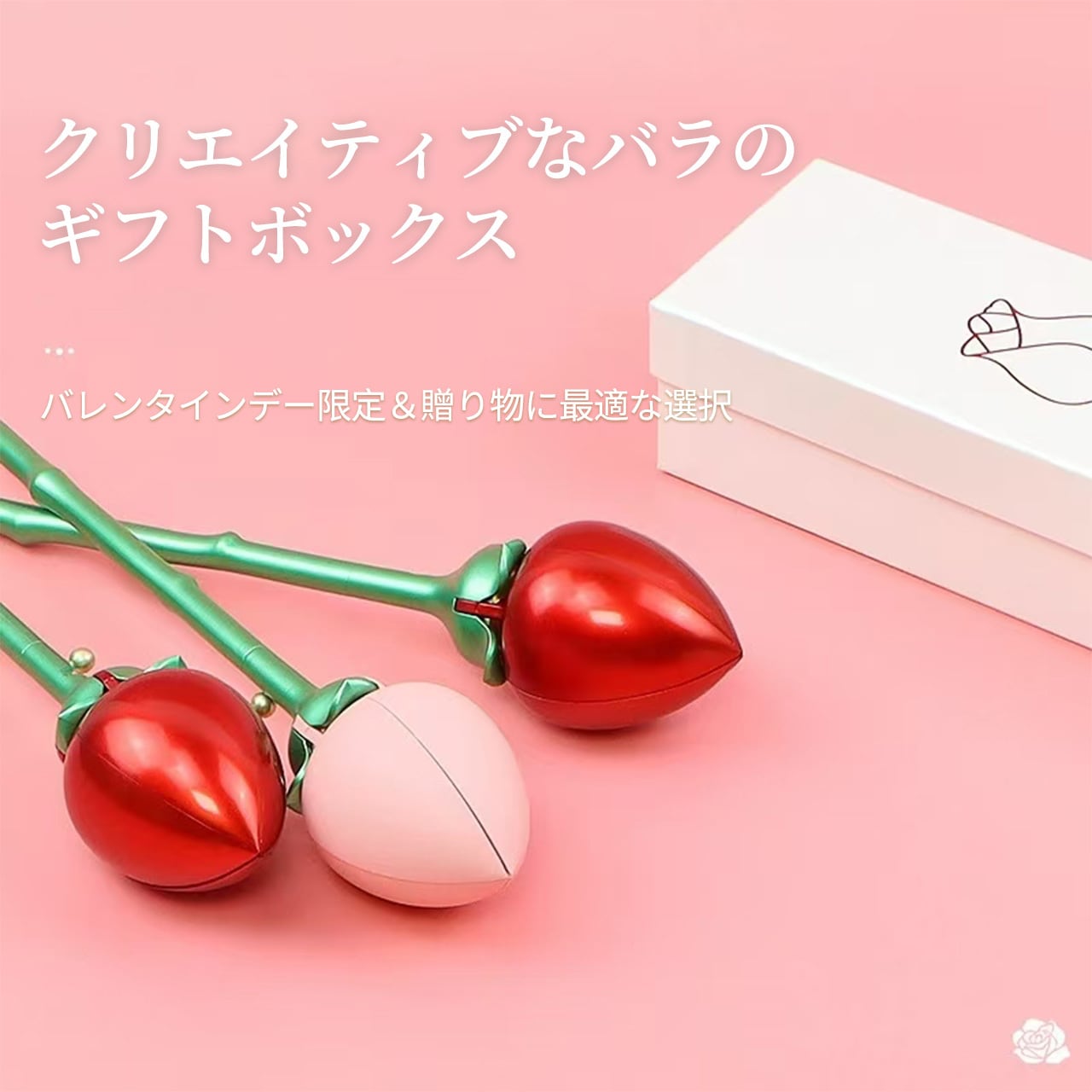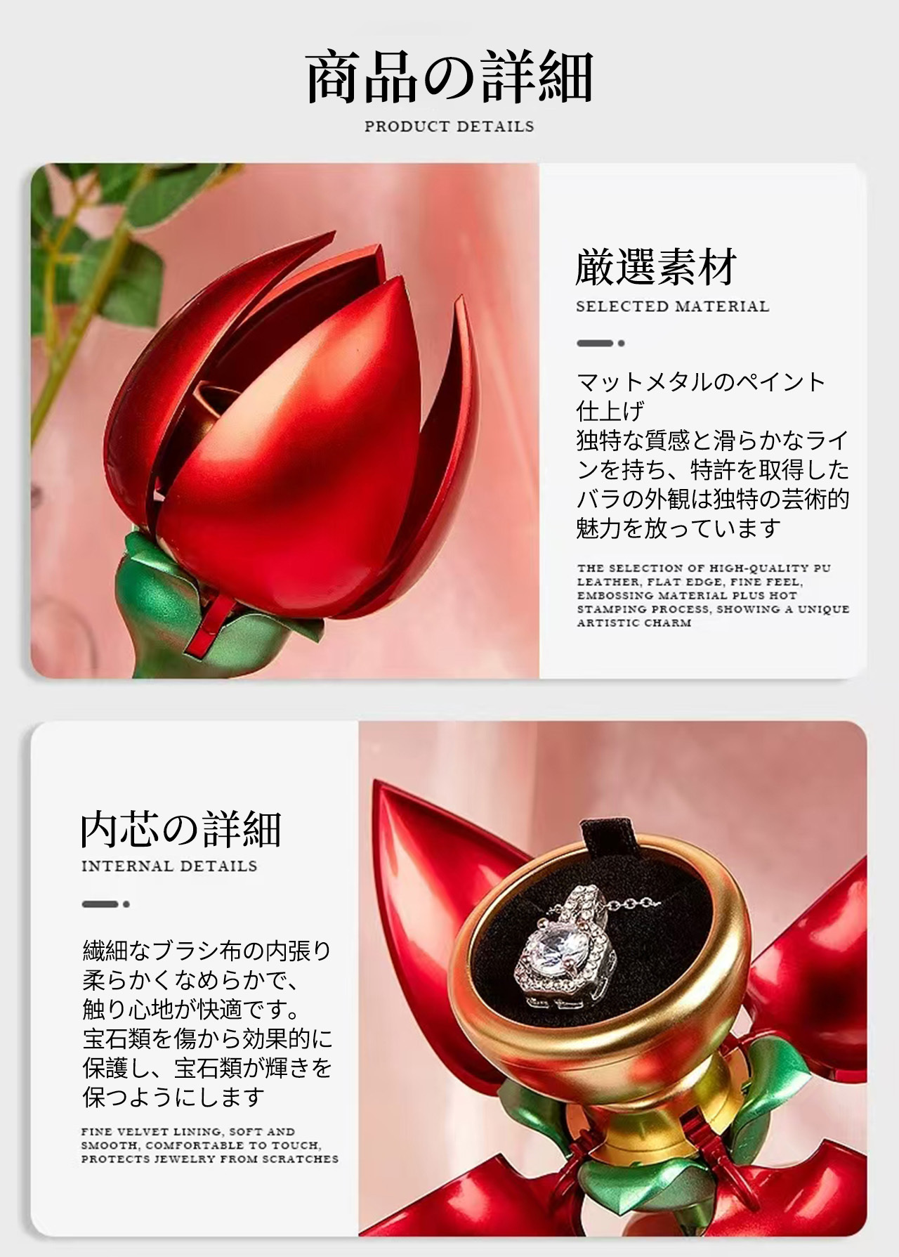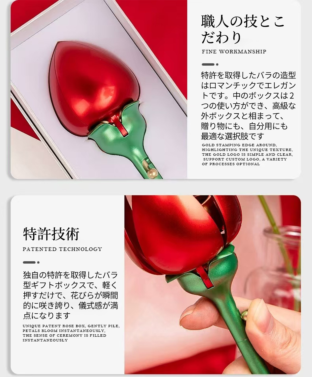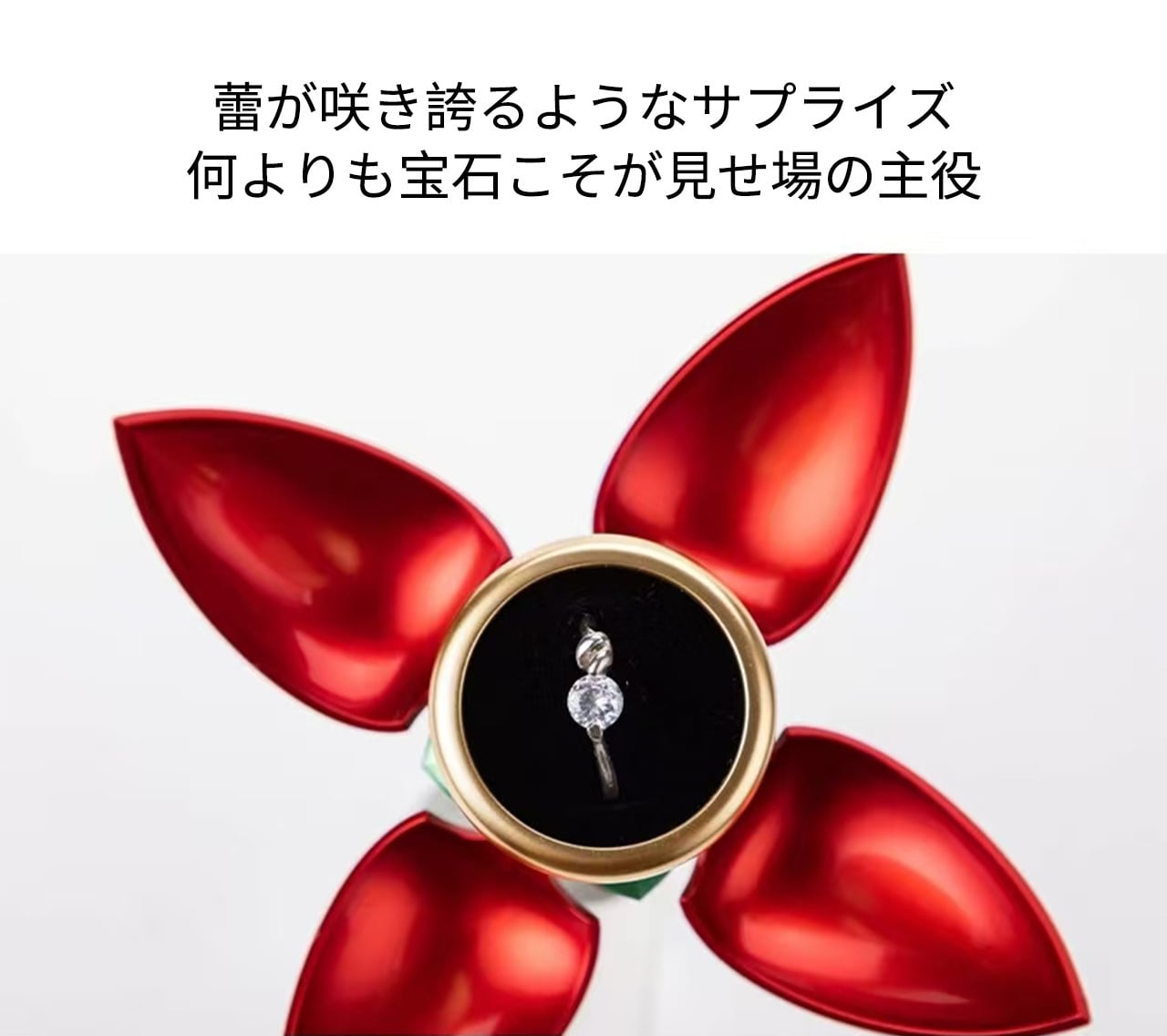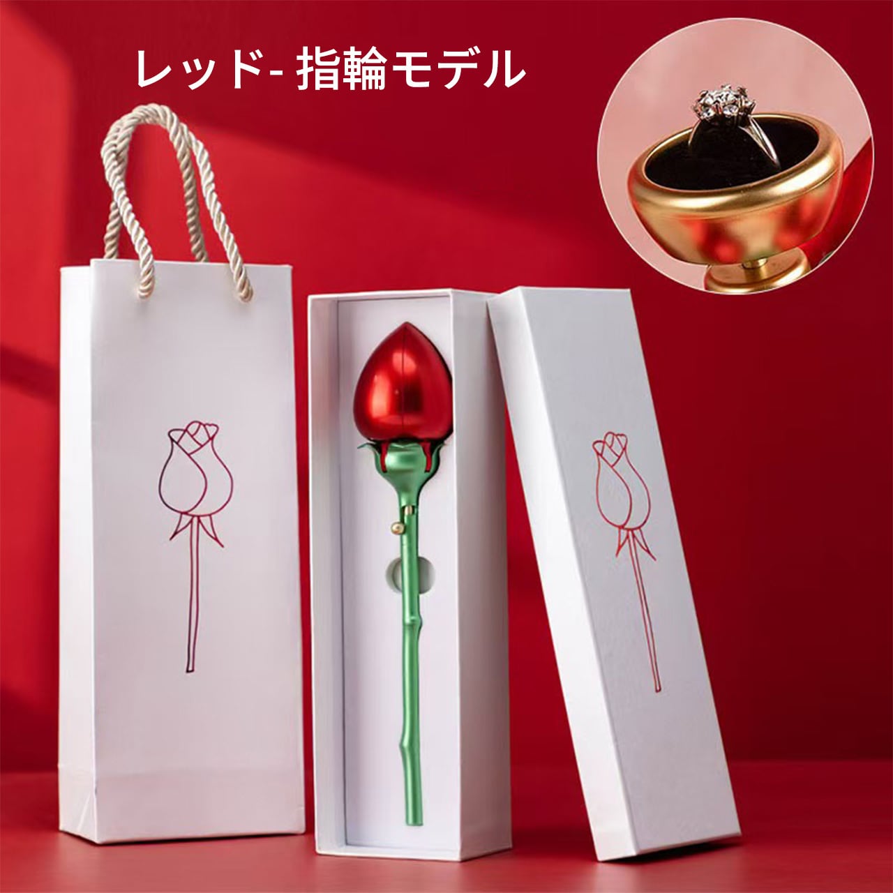 B240 .バラ 1 本型アクセサリーケース 回転式指輪収納 反転ネックレスボックス 花開きデザイン 人気クリエイティブサプライズボックス