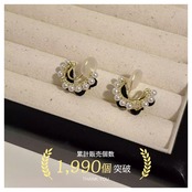 ■ 品名:レトロブラックベロアパールC型イヤリング