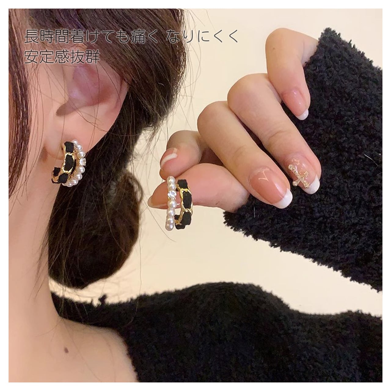 クリップ式の設計で、ピアス穴がない方でも安心して着用できます。イヤーリングの内側は滑りにくい素材で仕上げられており、長時間の着用でも痛みを感じにくく、日常の活動に支障をきたしません。