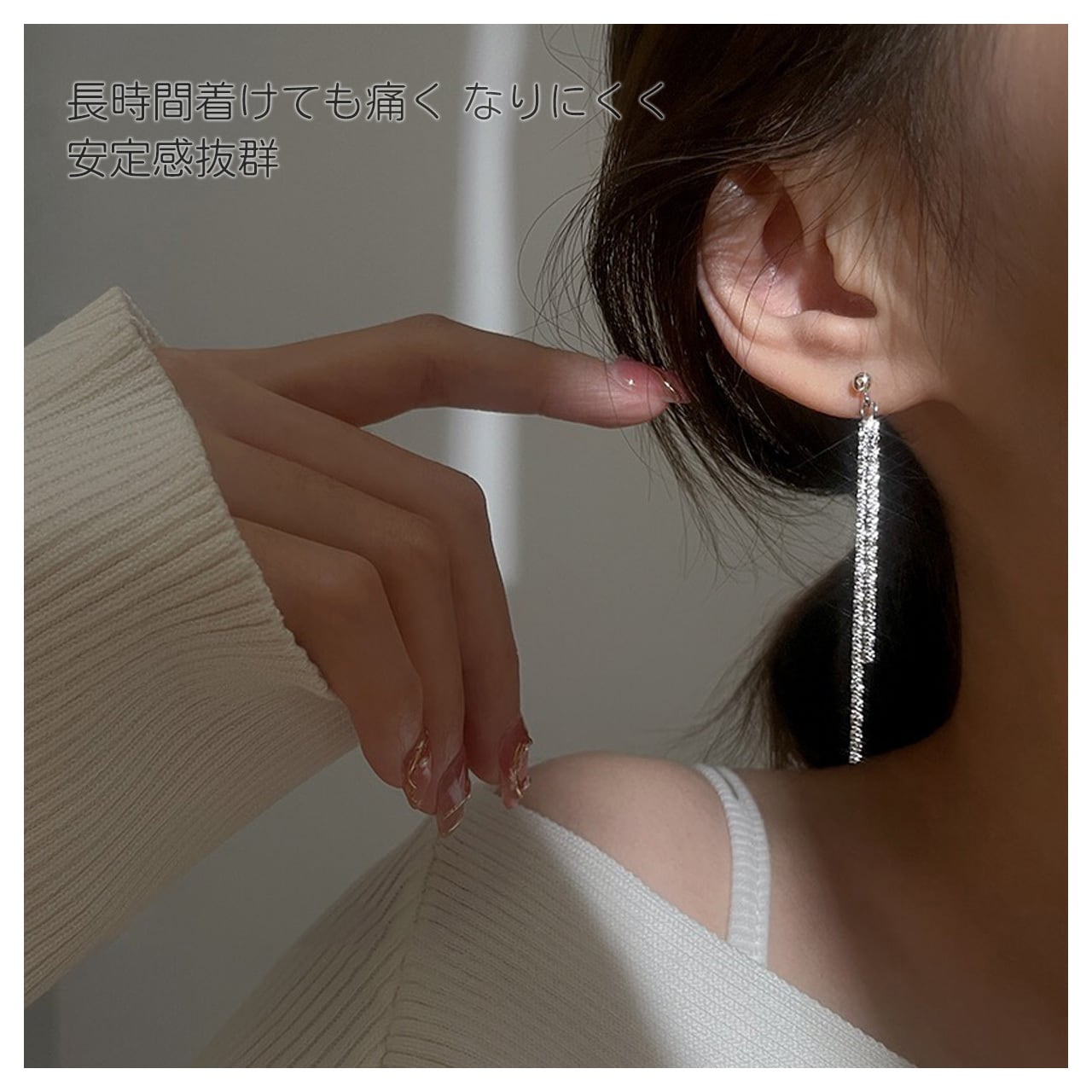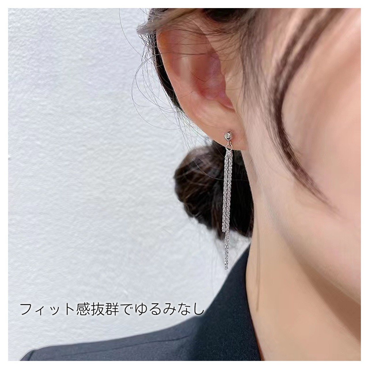 B244 .マンジュウジュ フリンジイヤリング ロングイヤー ピアスレス