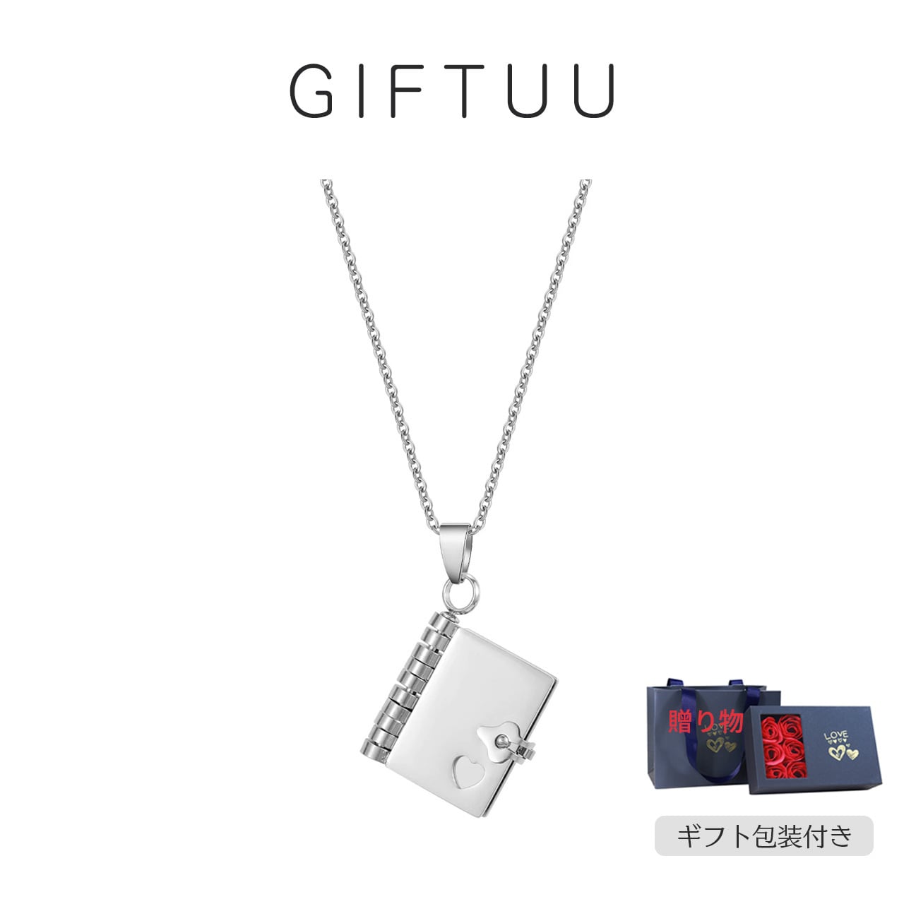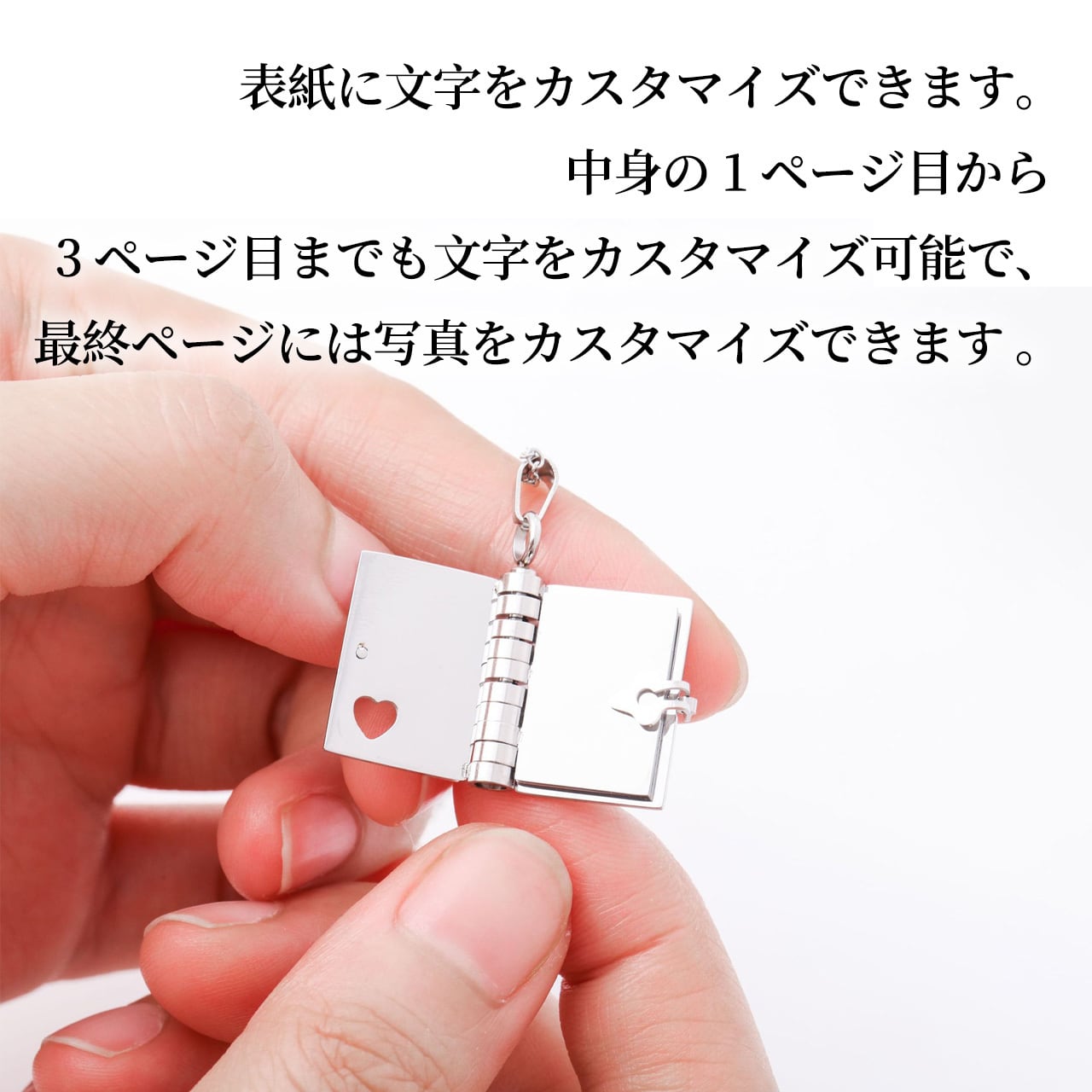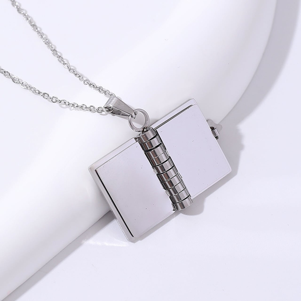 B80 .ステンレス製の本型ペンダント付きネックレス 思い出を残す贈り物としても最適で、ペンダントは開けてページをめくることができるユニークなアクセサリーです