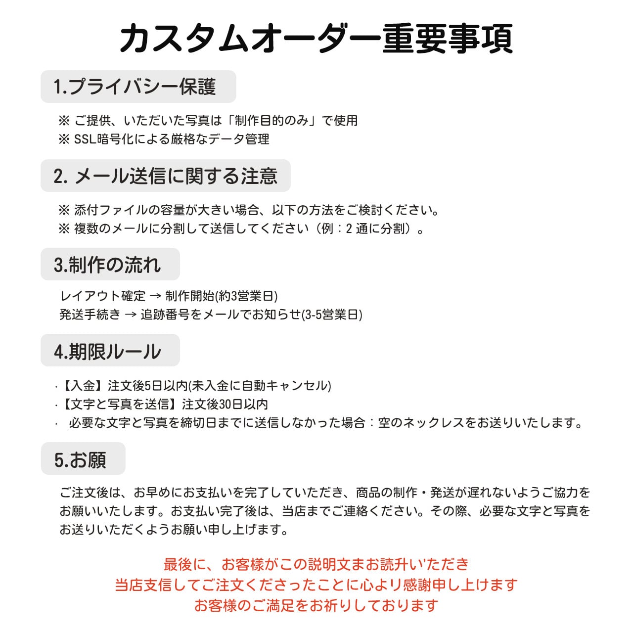 - お名前と注文番号を必ず記載してください。